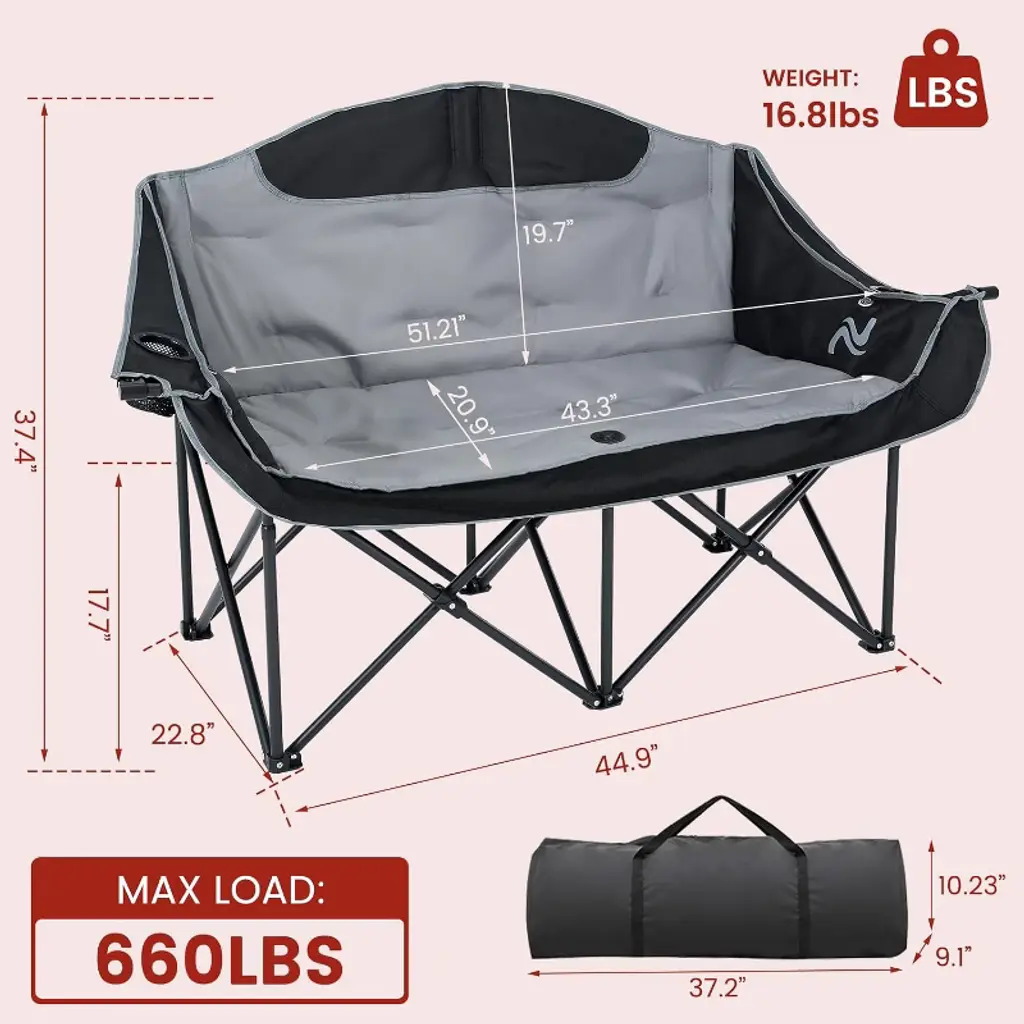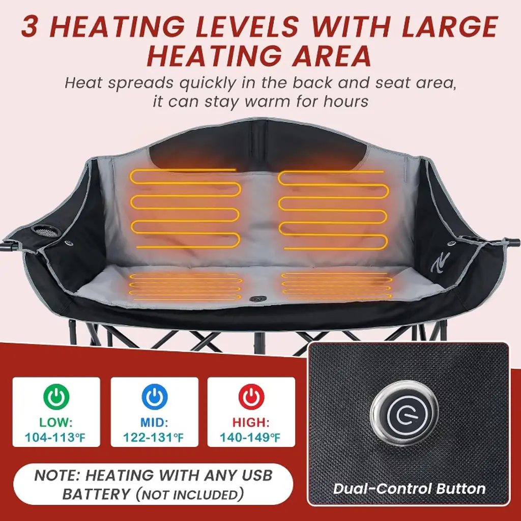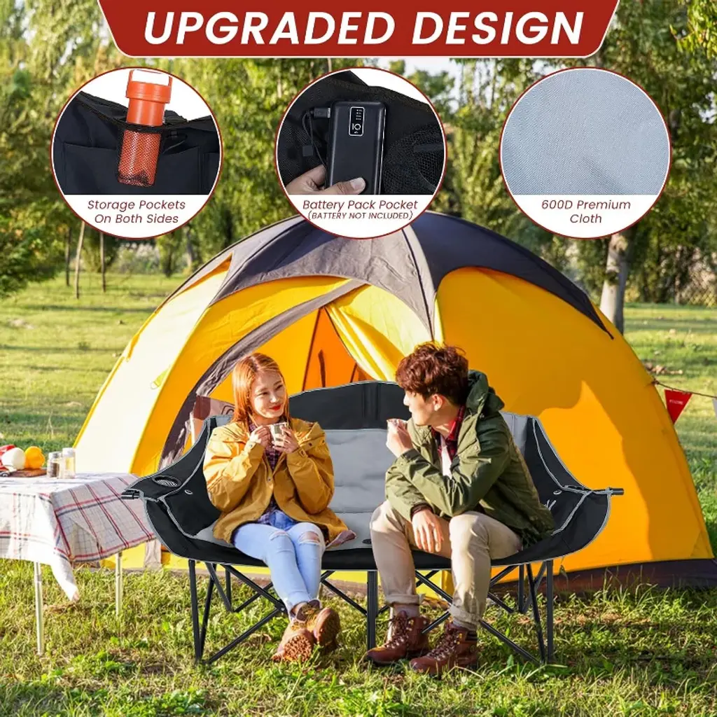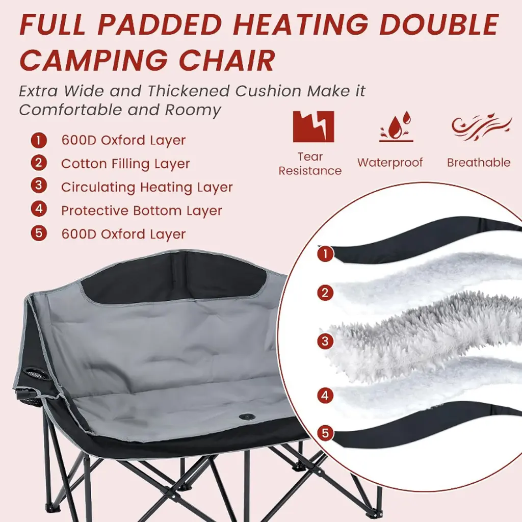 Docred Heated Double Camping Chair, Heated Folding Camping Chairs Loveseat,heating Oversized 2 Person Camp Chair, 3 Heat Levels