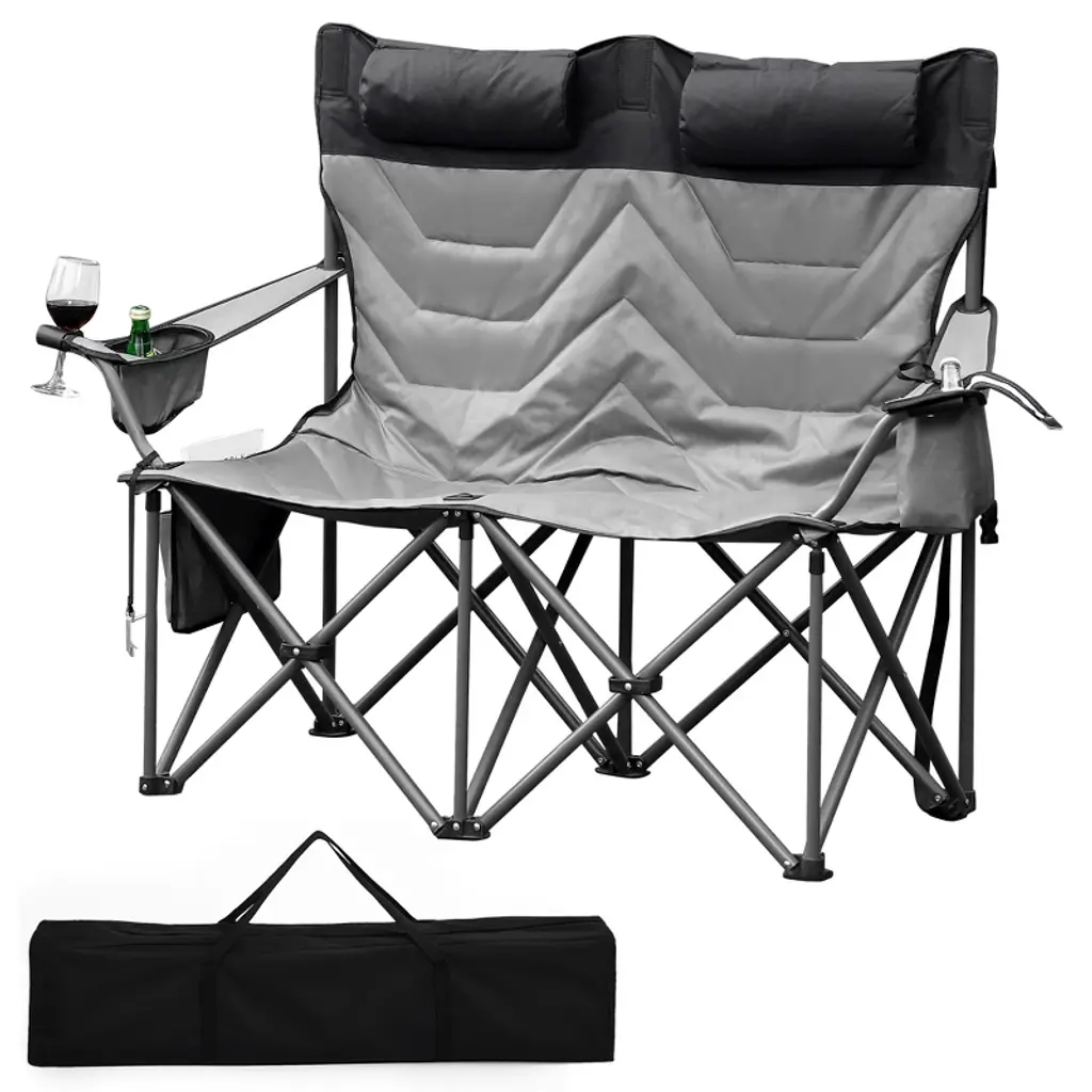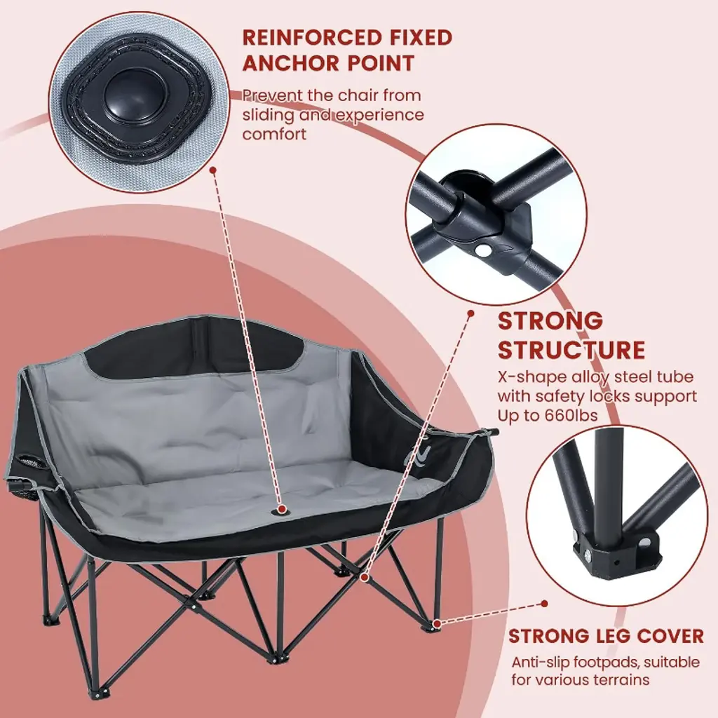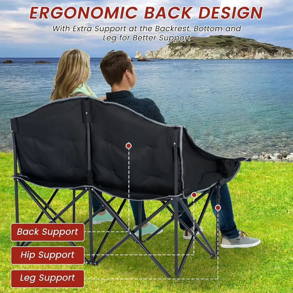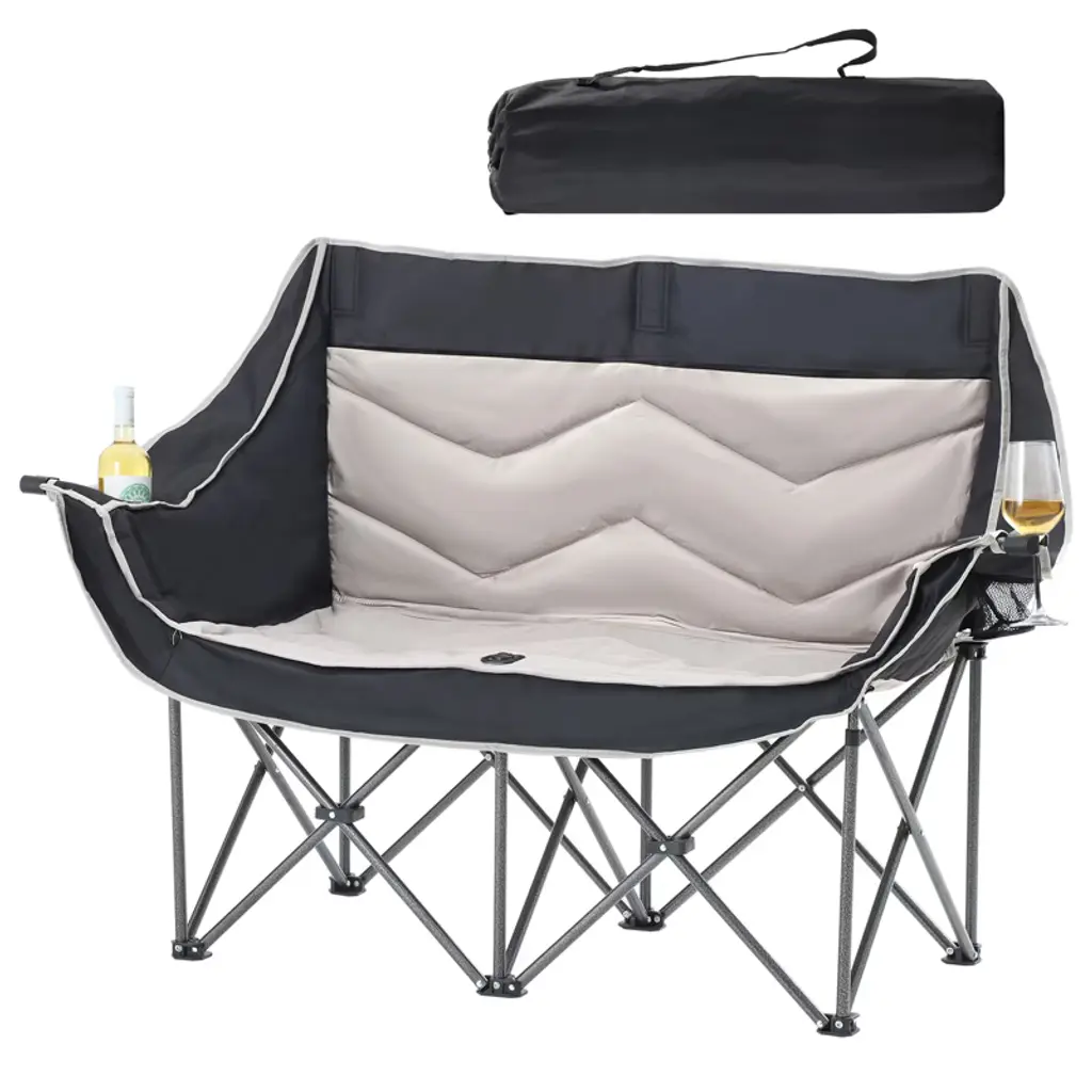 Docred Heated Double Camping Chair, Heated Folding Camping Chairs Loveseat,heating Oversized 2 Person Camp Chair, 3 Heat Levels