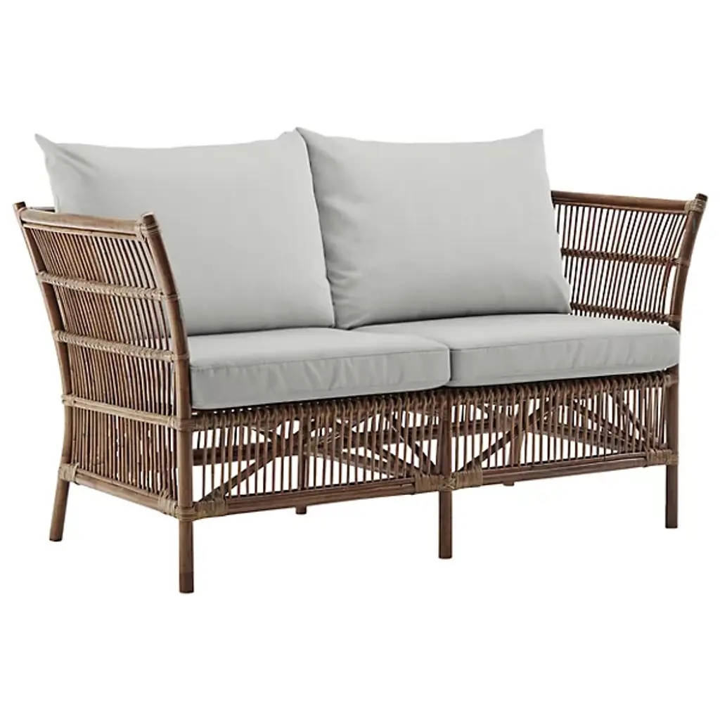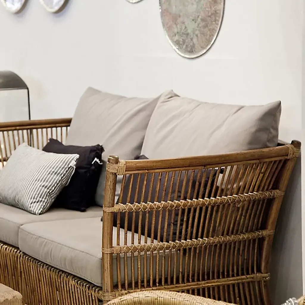 The Donatello Rattan 2-Seater Sofa from Sika Design brings a touch of mid-century modern elegance to any living room setting. With its graceful design inspired by Originals, this sofa blends seamlessly in spaces like living rooms, bedrooms, or offices. The handcrafted rattan frame and performance fabric cushions invite you to relax and enjoy moments of comfort and style. Elevate your space with this statement piece, reflecting the timeless craftsmanship of the Originals collection.