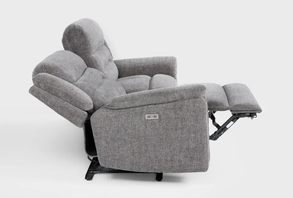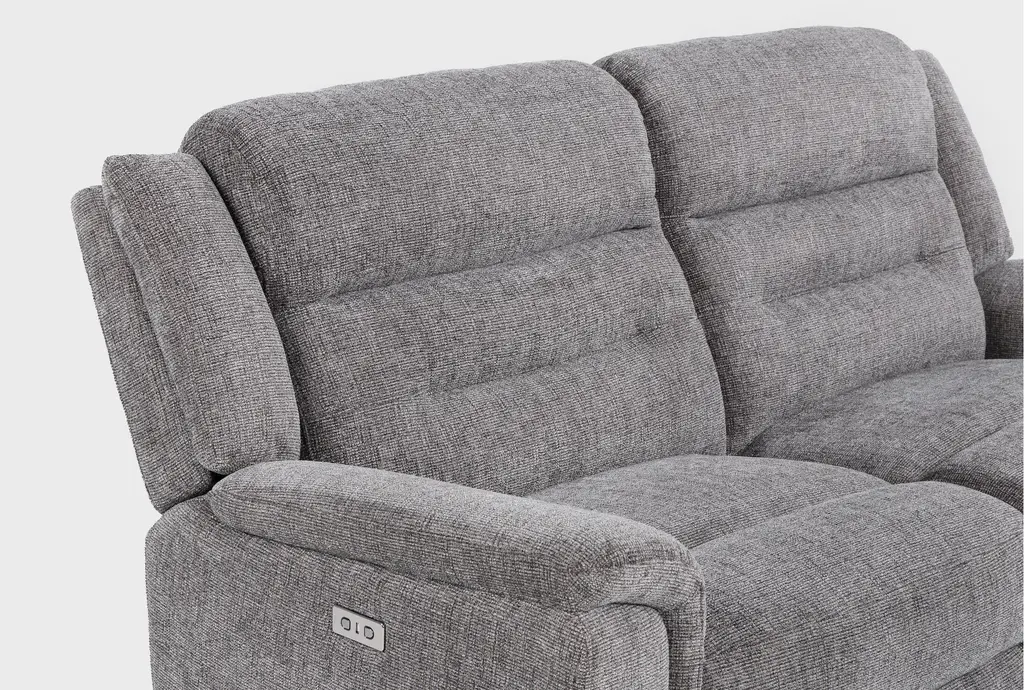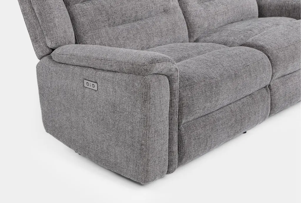 The Dutton Grey Fabric 80" 2 Piece Power Reclining Modular Loveseat offers both comfort and versatility to any living room. Upholstered in a soft grey fabric, this modular loveseat features power reclining capabilities for ultimate relaxation. Its plush seating and supportive backrest make it a perfect addition to your home.