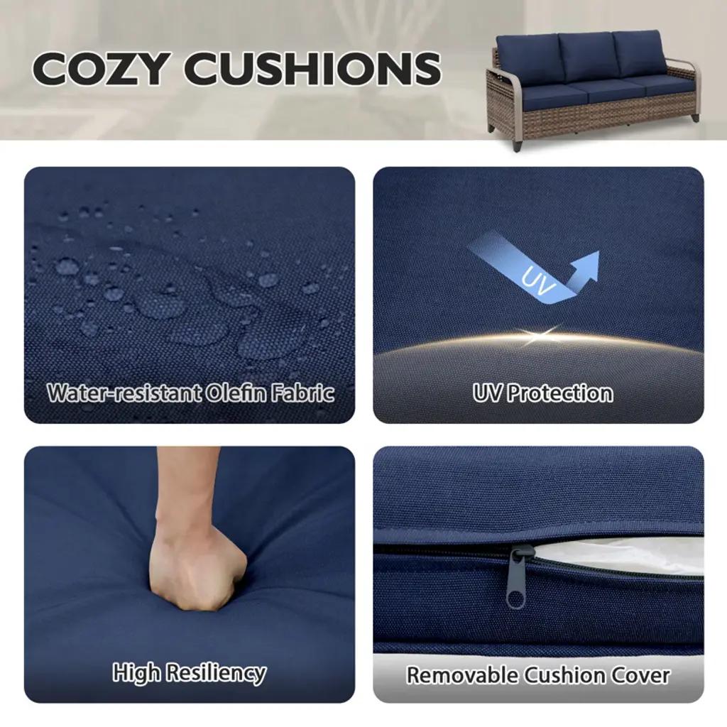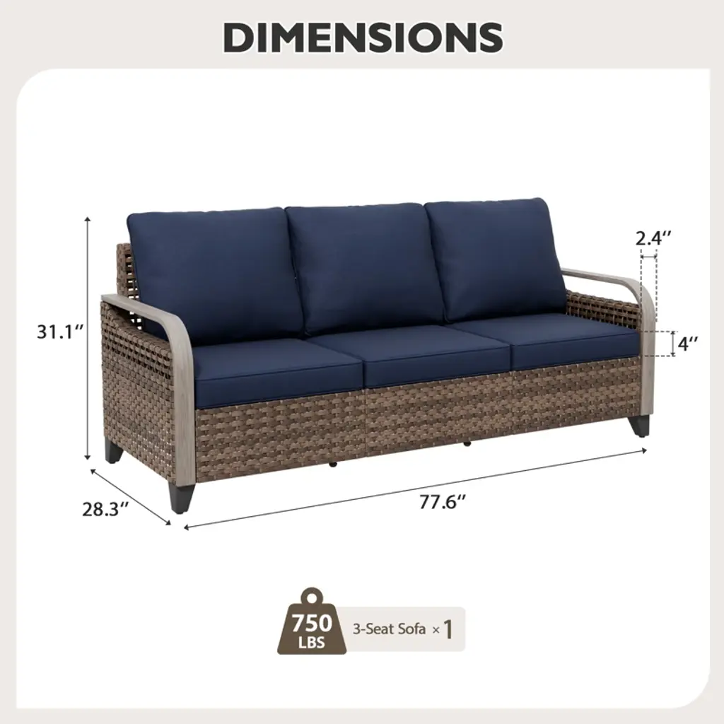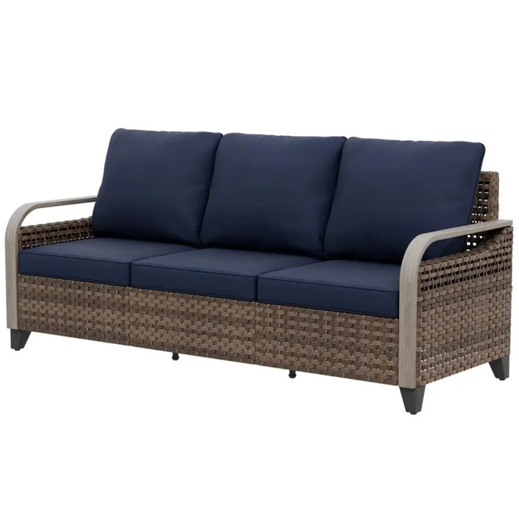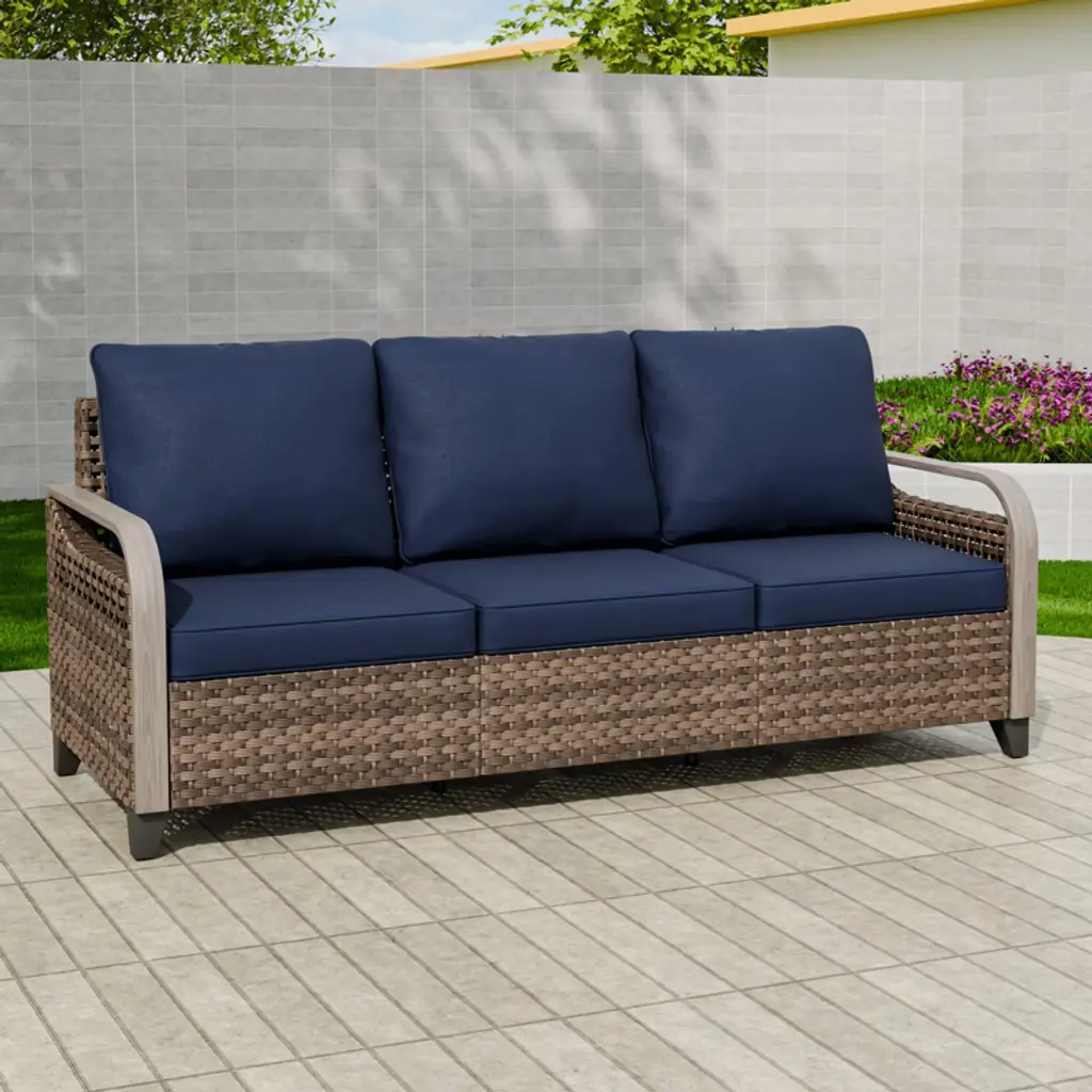Eagle Peak Wicker Outdoor Patio Sofa Patio Furniture Loveseat, 3 Seat Couch, Brown/blue