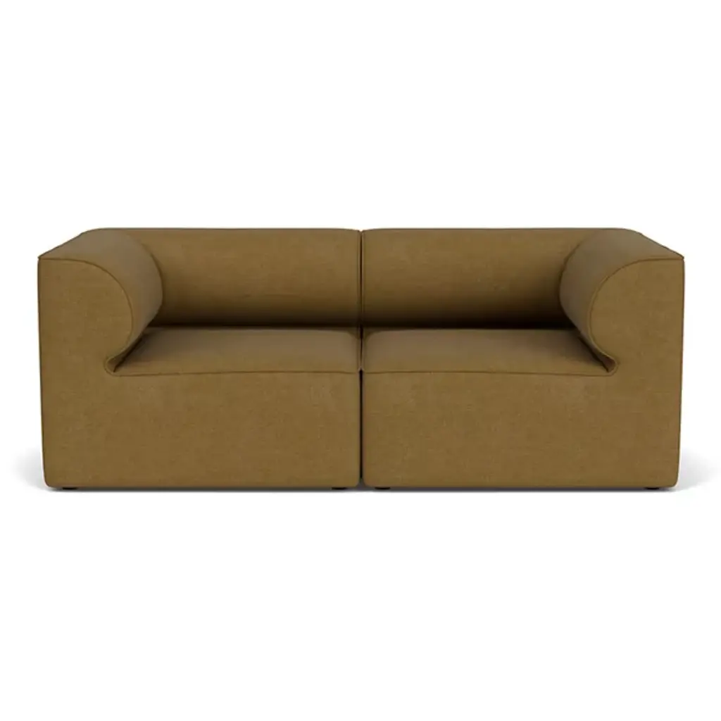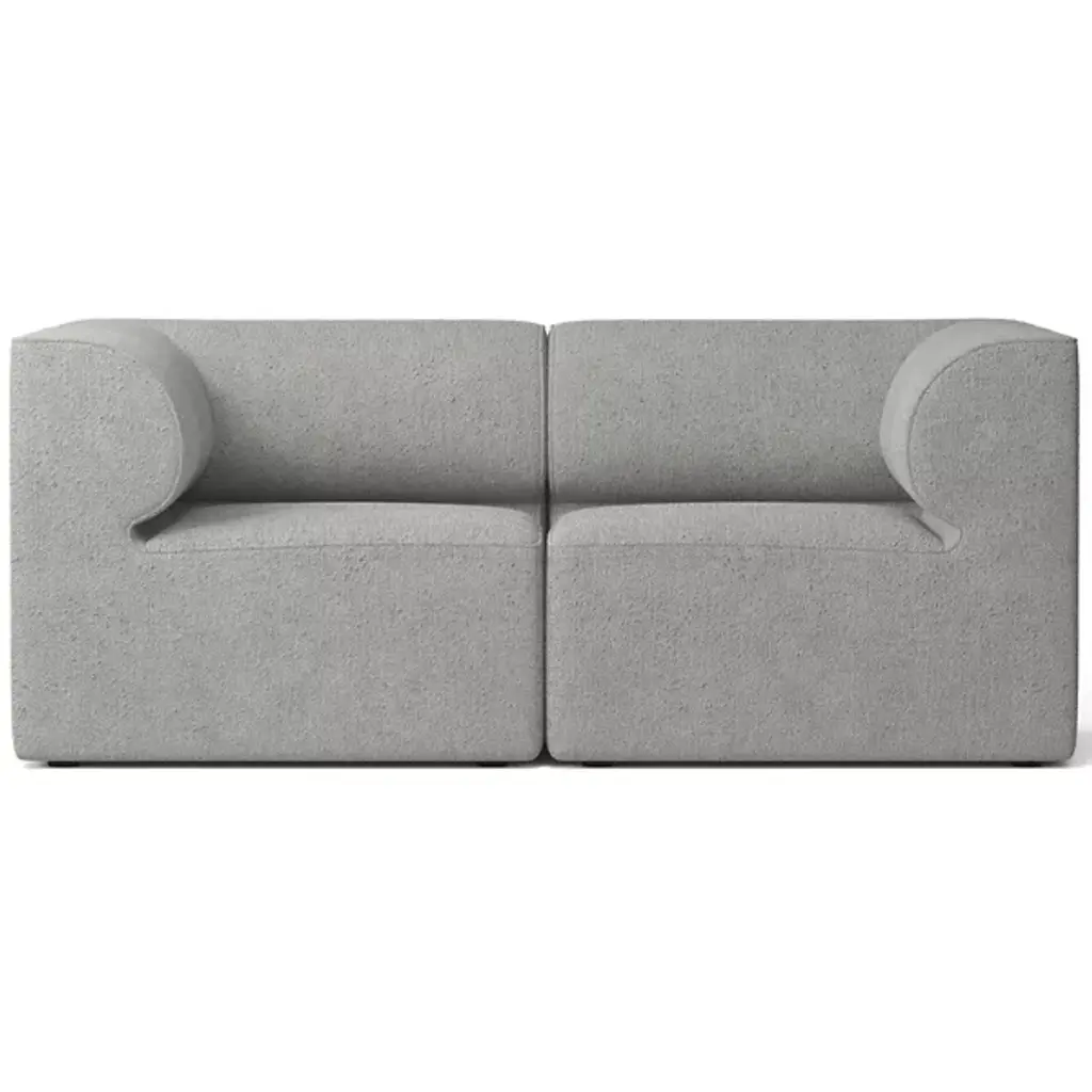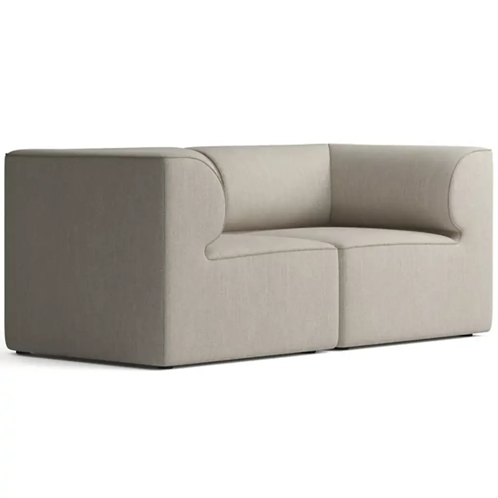The Eave 2-Seater Sofa Combination from Audo Copenhagen, formerly known as Menu, fills one with an inviting feeling like the familiar silhouette of an eave-accented pointy roof home. This Norm Architects design illustrates their soft minimalism approach of creating pieces so refined they leave nothing to add or take away. The clean geometric outline of the engineered wood framework helps emphasize the charming architectural curves. This sofa is composed of pine, plywood, and MDF. It features steel spring support. The sofa's curves give both people sitting down a hugging armrest to lean on and a generous back for support. High resiliency foam gives the soft upholstered “eaves” and the seat its plump quality. The seat creates seating that’s not too deep or upright for a sophisticated posture.