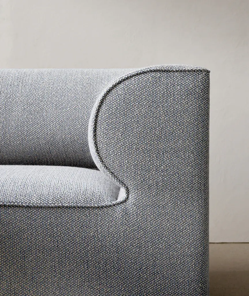 Inspired by architecture Eave Modular Sofa takes its name from “eaves” – the lower edges of the roof that overhang a wall. The sofa’s distinctive detail is its internal “eaves” – curved upholstered armrests that lend the sofa its expressive character. A perfect blend of style and comfort, Eave is a generous sofa that will encourage owners to relax. The seating angle is also ideal for offices or public spaces, enabling the user to sit actively engaging with work.