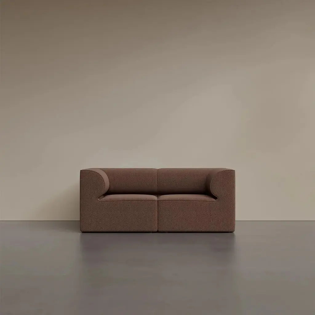 The Eave Modular Sofa 2-Seater Configuration 1 from Audo Copenhagen presents a harmonious balance of architectural inspiration and practical comfort. Created by the acclaimed Norm Architects studio, this thoughtfully composed arrangement brings together two corner modules to form a refined two-seater that makes a subtle yet distinctive statement in contemporary interiors. The design takes its name from the "eaves" of a roof a concept elegantly expressed in the sofa's curved backrests that create a protective, embracing sensation. This configuration features two identical corner modules positioned opposite each other, creating a symmetrical seating arrangement with generous depth that invites relaxation while maintaining a sophisticated profile. The inward-facing orientation of the curved backrests creates an intimate conversation space defined by the sofa's architectural character, with each seat offering the perfect depth for comfortable lounging or engaged interaction. The clean geometric lines are softened by the distinctive curved elements, cr eating visual interest that enhances rather than dominates its surroundings. Exceptional craftsmanship defines every aspect of this configuration from the robust internal structure of pine, plywood, and MDF to the system of no-sag springs and high-resilience foam that provides consistent comfort while maintaining its shape through years of use. The precisely engineered seat height offers ideal ergonomics for most users, creating a seating experience that feels as considered as it looks. Available in a range of premium upholstery options, this two-seater allows for personalization while maintaining its distinctive character. Perfect for urban apartments, office reception areas, or any setting where sophisticated seating must balance comfort with spatial efficiency, the Eave 2-Seater Configuration 1 exemplifies Norm Architects' "soft minimalism" approach where nothing can be added or taken away without compromising the design's integrity. This complete arrangement offers a turnkey solution while maintaining the flexibility to reconfigure or expand your seating over time, embodying the thoughtful versatility that defines the entire Eave collection.