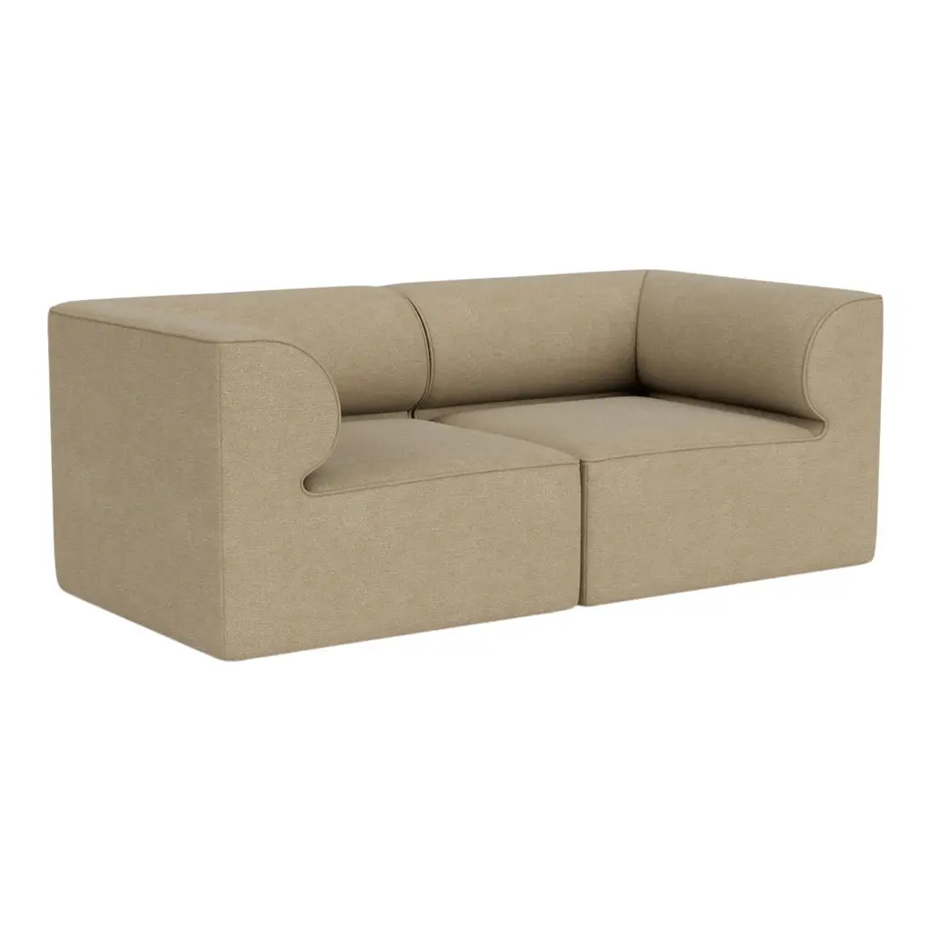 The Eave Modular Sofa 2-Seater Configuration 1 from Audo Copenhagen presents a harmonious balance of architectural inspiration and practical comfort. Created by the acclaimed Norm Architects studio, this thoughtfully composed arrangement brings together two corner modules to form a refined two-seater that makes a subtle yet distinctive statement in contemporary interiors. The design takes its name from the "eaves" of a roof a concept elegantly expressed in the sofa's curved backrests that create a protective, embracing sensation. This configuration features two identical corner modules positioned opposite each other, creating a symmetrical seating arrangement with generous depth that invites relaxation while maintaining a sophisticated profile. The inward-facing orientation of the curved backrests creates an intimate conversation space defined by the sofa's architectural character, with each seat offering the perfect depth for comfortable lounging or engaged interaction. The clean geometric lines are softened by the distinctive curved elements, cr eating visual interest that enhances rather than dominates its surroundings. Exceptional craftsmanship defines every aspect of this configuration from the robust internal structure of pine, plywood, and MDF to the system of no-sag springs and high-resilience foam that provides consistent comfort while maintaining its shape through years of use. The precisely engineered seat height offers ideal ergonomics for most users, creating a seating experience that feels as considered as it looks. Available in a range of premium upholstery options, this two-seater allows for personalization while maintaining its distinctive character. Perfect for urban apartments, office reception areas, or any setting where sophisticated seating must balance comfort with spatial efficiency, the Eave 2-Seater Configuration 1 exemplifies Norm Architects' "soft minimalism" approach where nothing can be added or taken away without compromising the design's integrity. This complete arrangement offers a turnkey solution while maintaining the flexibility to reconfigure or expand your seating over time, embodying the thoughtful versatility that defines the entire Eave collection.