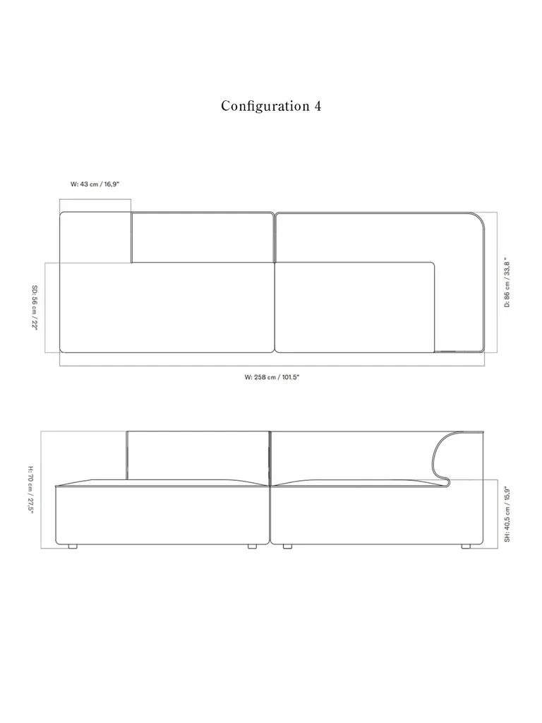Eave Modular Sofa, 2-Seater, Configurations 3-4