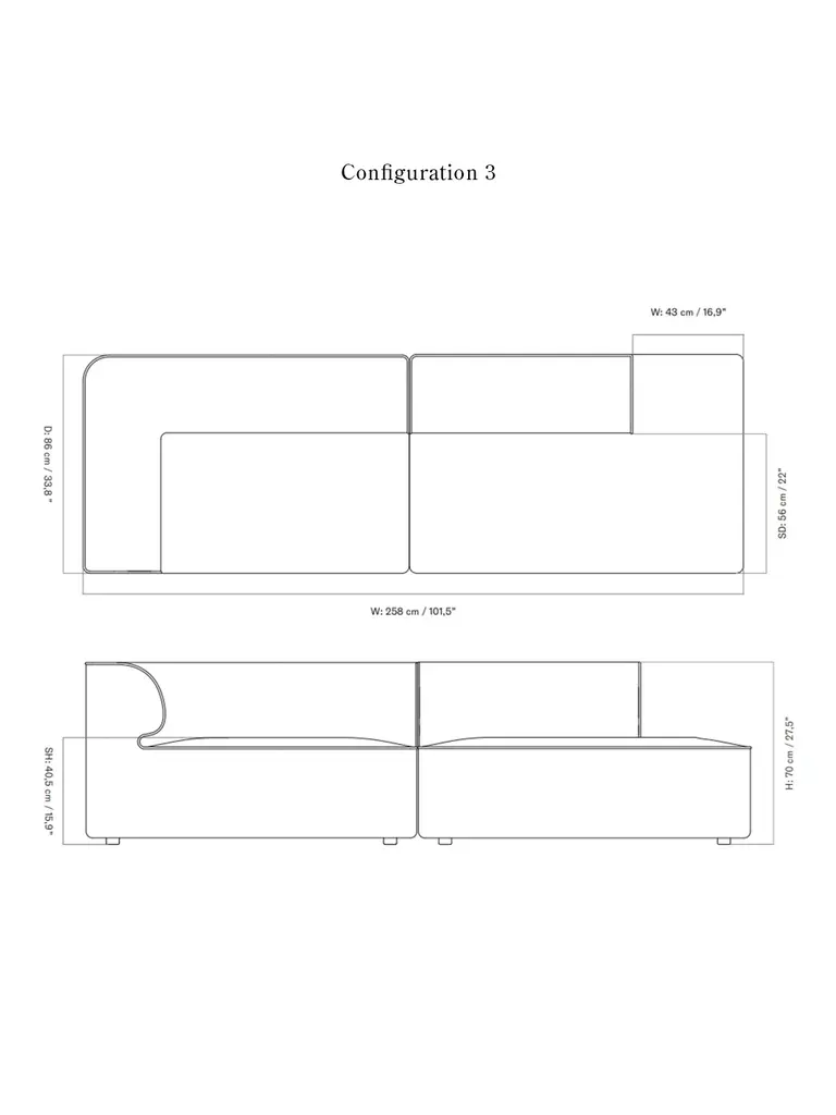 Eave Modular Sofa, 2-Seater, Configurations 3-4