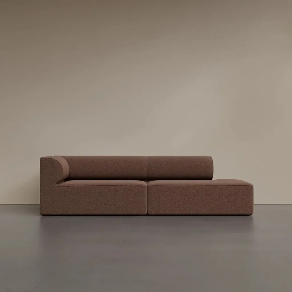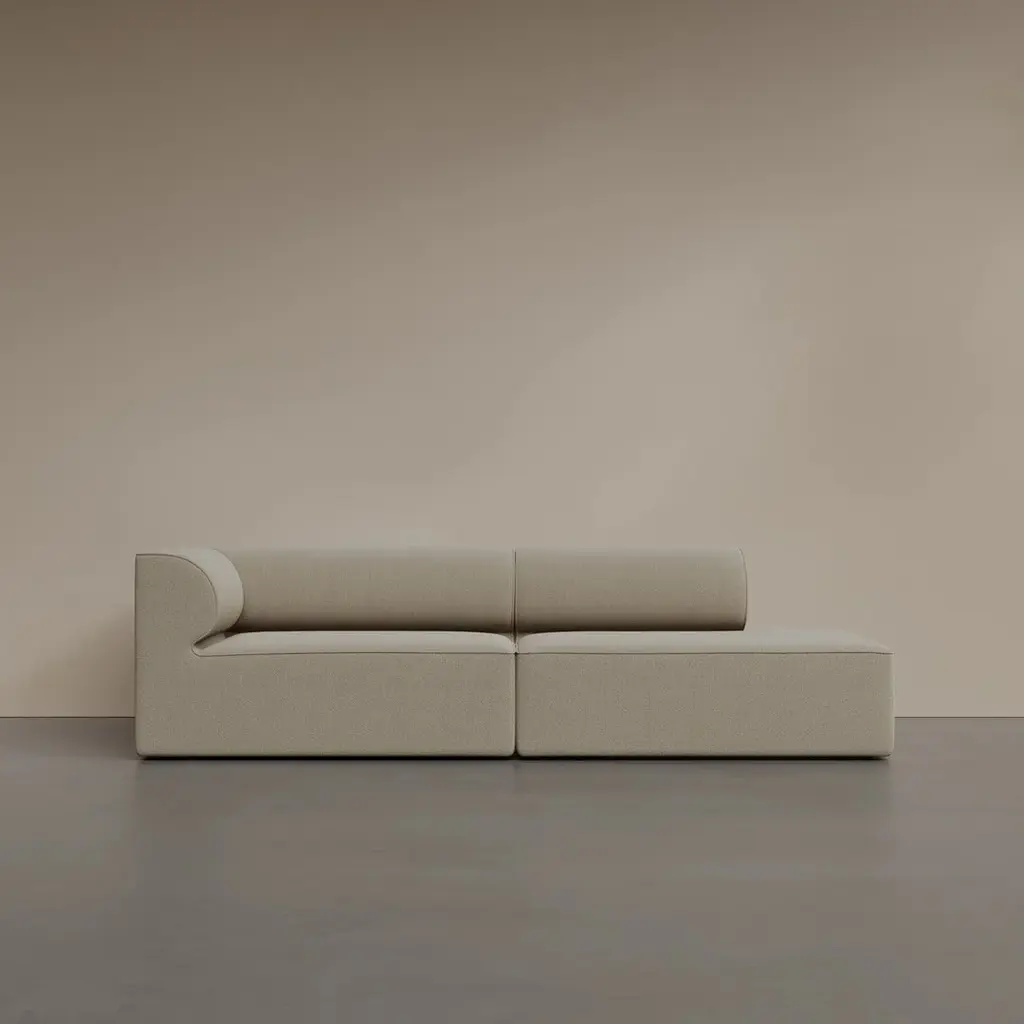 The Eave Modular Sofa 2-Seater Configurations 3-4 from Audo Copenhagen offer architectural sophistication with asymmetrical flair for contemporary living spaces. Designed by the acclaimed Norm Architects studio, these thoughtfully composed arrangements pair a corner module with an open end module to create dynamic two-seaters that define space with intentional character. The distinctive design takes its name from the "eaves" of a roof concept elegantly expressed in the curved backrests that create a protective, embracing sensation. Configuration 3 positions the corner module on the left and the open end on the right, while Configuration 4 reverses this orientation allowing you to select the perfect arrangement for your specific floor plan. Both configurations span a generous width with consistent depth, creating substantial seating that maintains visual lightness through clean lines and considered proportions. The asymmetrical composition creates visual interest while providing practical functionality, with one end open for easier access or connection to other furniture pieces. Beneath the refined exterior lies exceptional craftsmanship a framework of pine, plywood, and MDF supports a system of no-sag springs and high-resilience foam that delivers consistent comfort while maintaining its shape through years of use. The thoughtfully designed seat height and depth strike the perfect balance between relaxation and engagement, creating a versatile seating experience that adapts to various activities throughout the day. Available in a range of premium upholstery options, these configurations allow for personalization while maintaining their distinctive architectural character. Perfect for defining zones within open-concept spaces, creating conversation areas against walls, or establishing sophisticated seating in office environments, Configurations 3-4 exemplify Norm Architects' philosophy of thoughtful simplicity where every curve and proportion serves both aesthetic and functional purposes. These complete arrangements offer turnkey solutions while maintaining the flexibility to reconfigure or expand your seating arrangement over time, embodying the versatile nature of truly considered design.