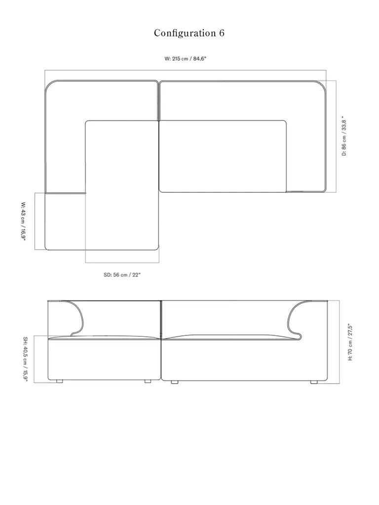 Eave Modular Sofa, 2-Seater, Configurations 5-6