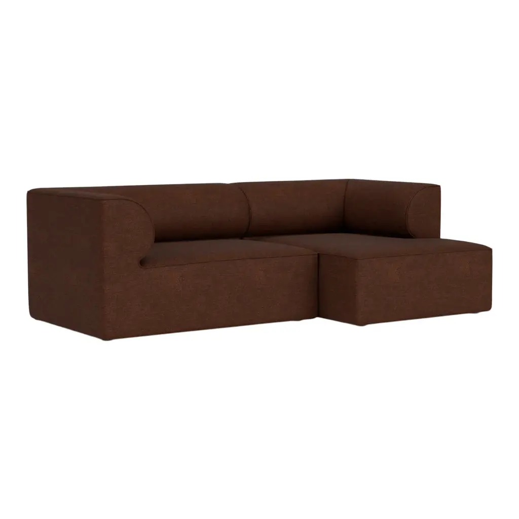 The Eave Modular Sofa 2-Seater Configurations 5-6 from Audo Copenhagen transform living spaces through architectural forms enhanced with extended lounging capability. Created by the visionary Norm Architects studio, these thoughtfully composed arrangements pair a corner module with a chaise lounge module to create dynamic two-seaters that balance intimate conversation with luxurious relaxation. The distinctive design takes its name from the "eaves" of a roofa concept elegantly expressed in the curved backrests that create a protective, embracing sensation. Configuration 5 positions the corner module on the left with the chaise extending to the right, while Configuration 6 reverses this orientationallowing you to select the perfect arrangement for your specific floor plan and traffic flow. Both configurations create substantial seating that invites different postures and activities. The L-shaped composition defines space with architectural precision while providing versatile functionality for contemporary living patterns. Exceptional craftsmanship defines every aspect of these configurationsfrom the robust internal structure of pine, plywood, and MDF to the system of no-sag springs and high-resilience foam that maintains consistent comfort while preserving its shape through years of use. The thoughtfully designed seat height and depth create an ideal balance between support and relaxation, while the extended chaise section invites full-body lounging for reading, conversation, or contemplation. Available in a range of premium upholstery options, these configurations allow for personalization while maintaining their distinctive architectural character. Perfect for creating primary seating in living rooms, defining relaxation zones in open-concept spaces, or establishing sophisticated lounge areas in hospitality settings, Configurations 5-6 exemplify Norm Architects' "soft minimalism" approachwhere nothing can be added or taken away without compromising the design's integrity. These complete arrangements offer turnkey solutions while maintaining the flexibility to reconfigure your seating over time, embodying the thoughtful versatility that defines the entire Eave collection.