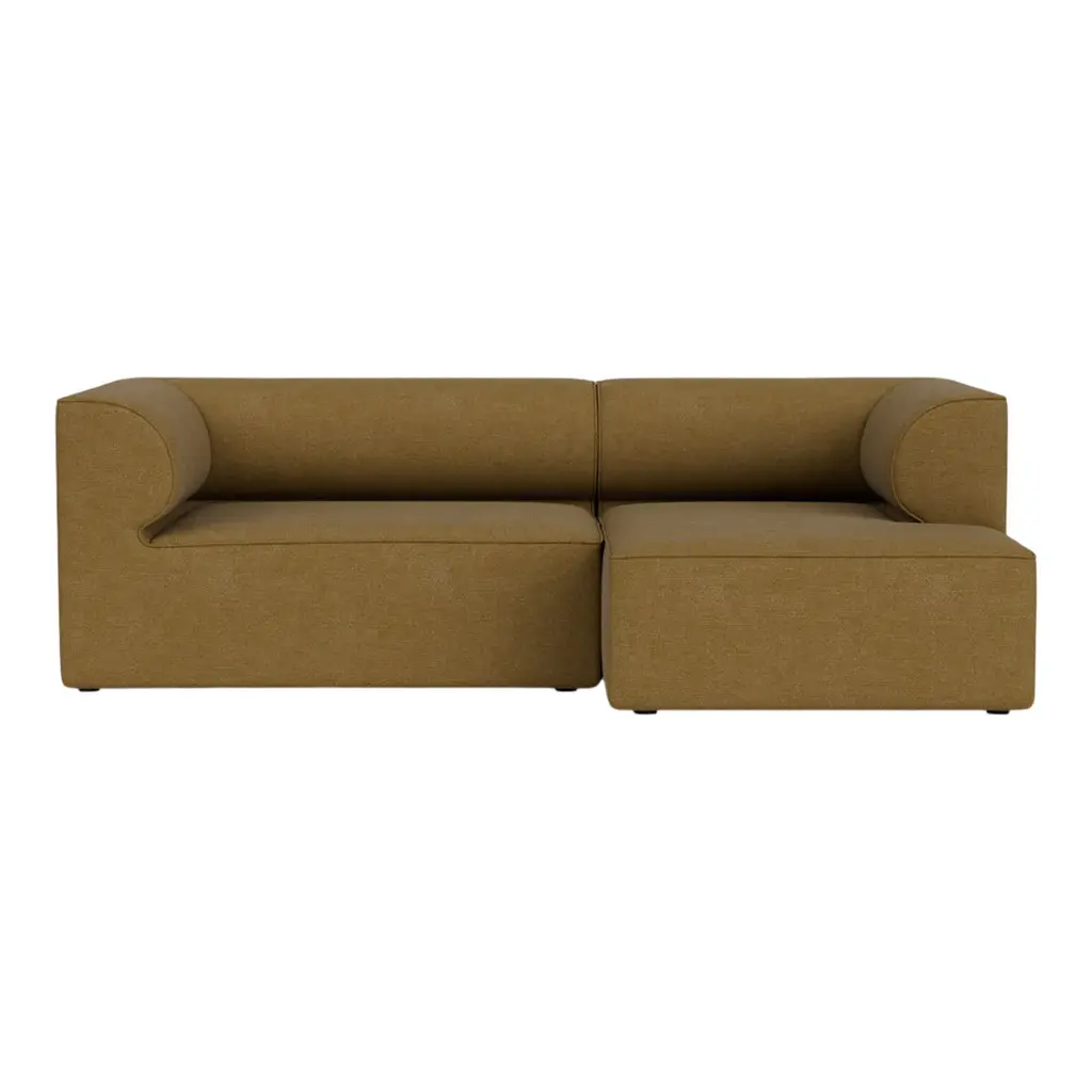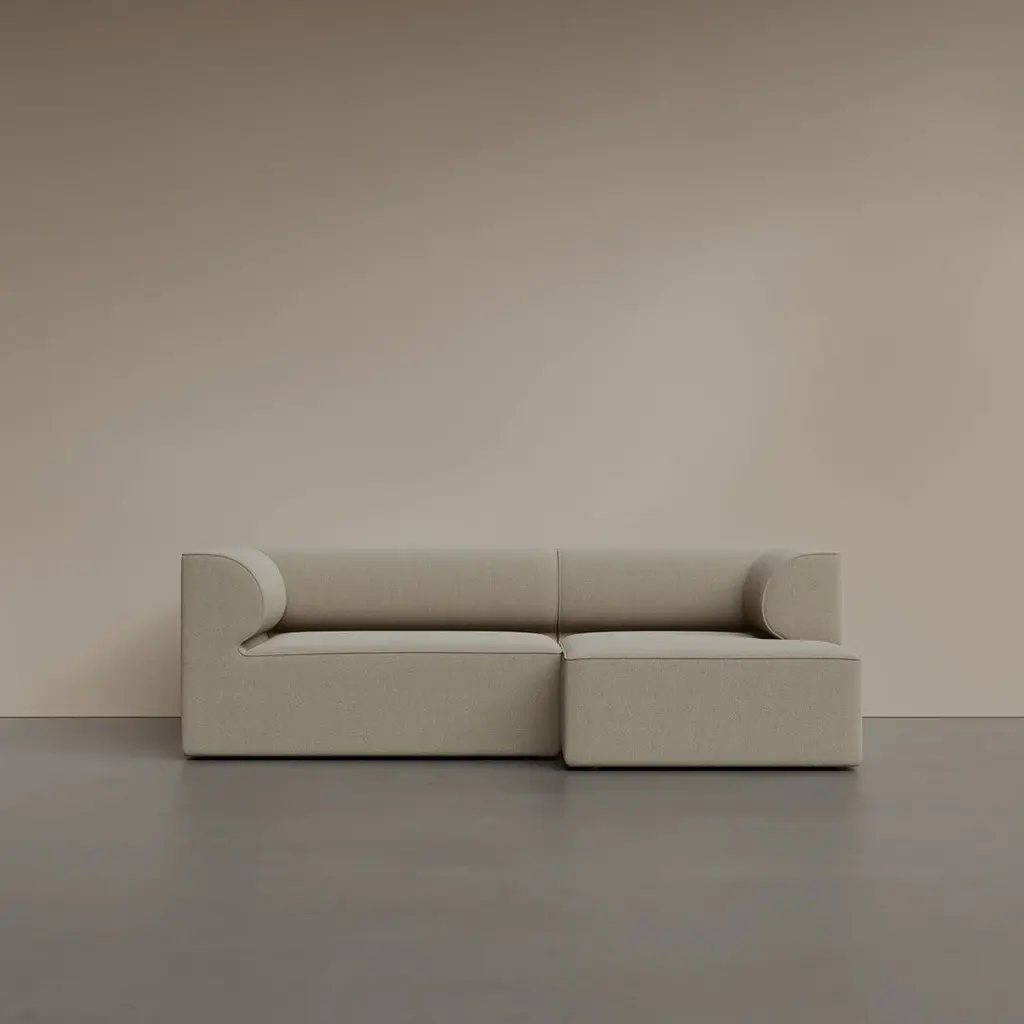 The Eave Modular Sofa 2-Seater Configurations 5-6 from Audo Copenhagen transform living spaces through architectural forms enhanced with extended lounging capability. Created by the visionary Norm Architects studio, these thoughtfully composed arrangements pair a corner module with a chaise lounge module to create dynamic two-seaters that balance intimate conversation with luxurious relaxation. The distinctive design takes its name from the "eaves" of a roofa concept elegantly expressed in the curved backrests that create a protective, embracing sensation. Configuration 5 positions the corner module on the left with the chaise extending to the right, while Configuration 6 reverses this orientationallowing you to select the perfect arrangement for your specific floor plan and traffic flow. Both configurations create substantial seating that invites different postures and activities. The L-shaped composition defines space with architectural precision while providing versatile functionality for contemporary living patterns. Exceptional craftsmanship defines every aspect of these configurationsfrom the robust internal structure of pine, plywood, and MDF to the system of no-sag springs and high-resilience foam that maintains consistent comfort while preserving its shape through years of use. The thoughtfully designed seat height and depth create an ideal balance between support and relaxation, while the extended chaise section invites full-body lounging for reading, conversation, or contemplation. Available in a range of premium upholstery options, these configurations allow for personalization while maintaining their distinctive architectural character. Perfect for creating primary seating in living rooms, defining relaxation zones in open-concept spaces, or establishing sophisticated lounge areas in hospitality settings, Configurations 5-6 exemplify Norm Architects' "soft minimalism" approachwhere nothing can be added or taken away without compromising the design's integrity. These complete arrangements offer turnkey solutions while maintaining the flexibility to reconfigure your seating over time, embodying the thoughtful versatility that defines the entire Eave collection.