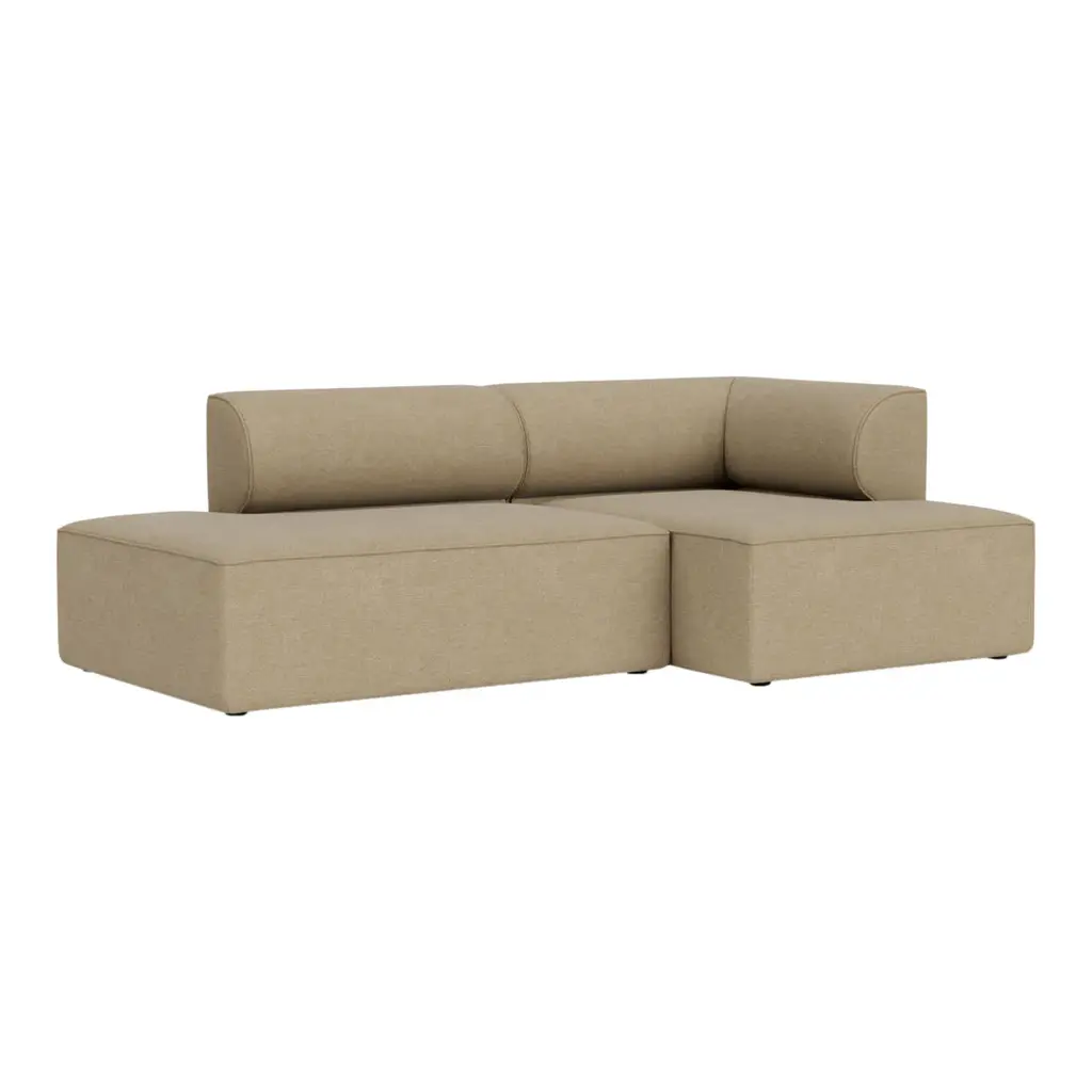 The Eave Modular Sofa 2-Seater Configurations 7-8 from Audo Copenhagen represent the ultimate expression of contemporary lounging through architectural precision. Designed by the acclaimed Norm Architects studio, these innovative arrangements pair two chaise lounge modules to create expansive two-seaters that prioritize relaxation while maintaining sophisticated visual presence. The distinctive design takes its name from the "eaves" of a roof concept elegantly expressed in the curved backrests that create a protective, embracing sensation. Configuration 7 positions the chaise modules in opposite directions with their backs creating a central division, while Configuration 8 aligns them in parallel facing the same direction providing flexibility for different spatial contexts and usage patterns. Both create substantial seating that encourages full-body relaxation. These unique compositions redefine conventional seating arrangements, inviting multiple lounging postures while maintaining clean architectural lines. Beneath the refined exterior lies exceptional craftsmanship a framework of pine, plywood, and MDF supports a system of no-sag springs and high-resilience foam that delivers consistent comfort while maintaining its shape through years of daily use. The thoughtfully designed seat height and depth create the perfect foundation for extended relaxation, while the signature curved backrests provide subtle support that enhances rather than restricts various lounging positions. Available in a range of premium upholstery options, these configurations allow for personalization while maintaining their distinctive architectural character. Ideal for creating statement seating in spacious living environments, establishing relaxation zones in hospitality settings, or defining conversation areas that encourage lingering interaction, Configurations 7-8 exemplify Norm Architects' philosophy that nothing should be added or taken away every element exists in perfect balance. These complete arrangements offer turnkey solutions for those seeking sophisticated lounging options that transcend conventional sofa formats, embodying the innovative spirit that defines the entire Eave collection.