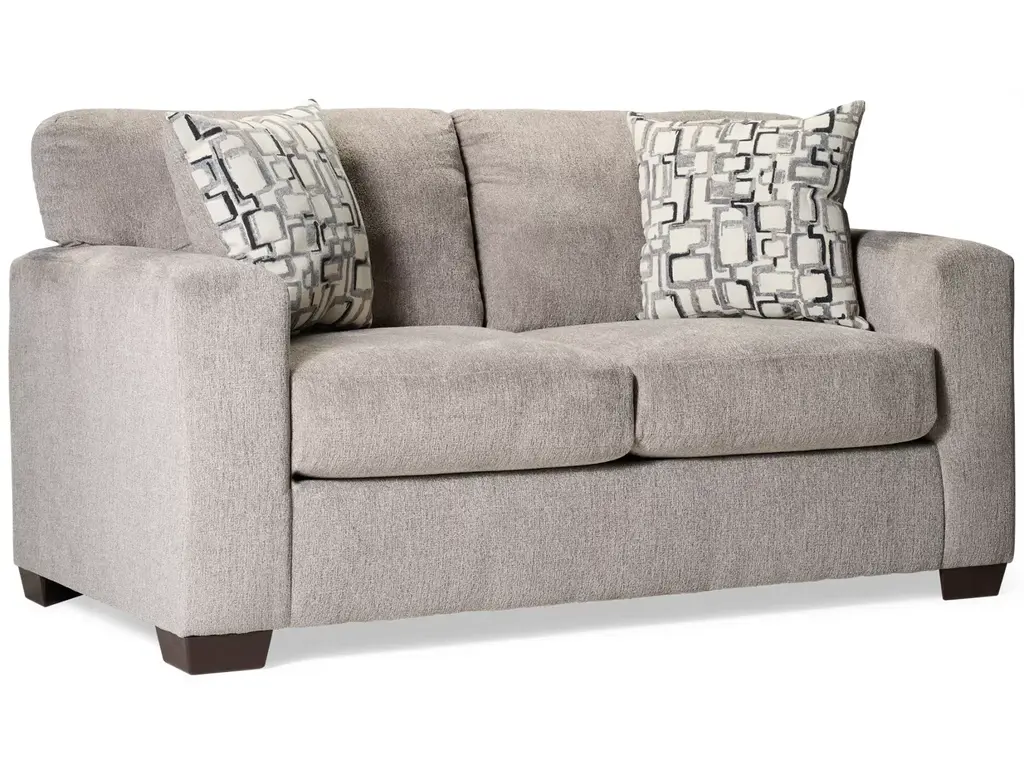 Bring modern flair to your living room seating with the Peak Living Edson Loveseat. Perfect for unwinding with friends and family, this cozy loveseat features soft textured upholstery with wide track arms and tapered block feet. Includes two toss pillows for added comfort and style.
