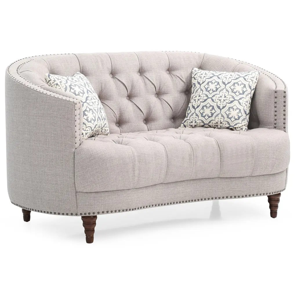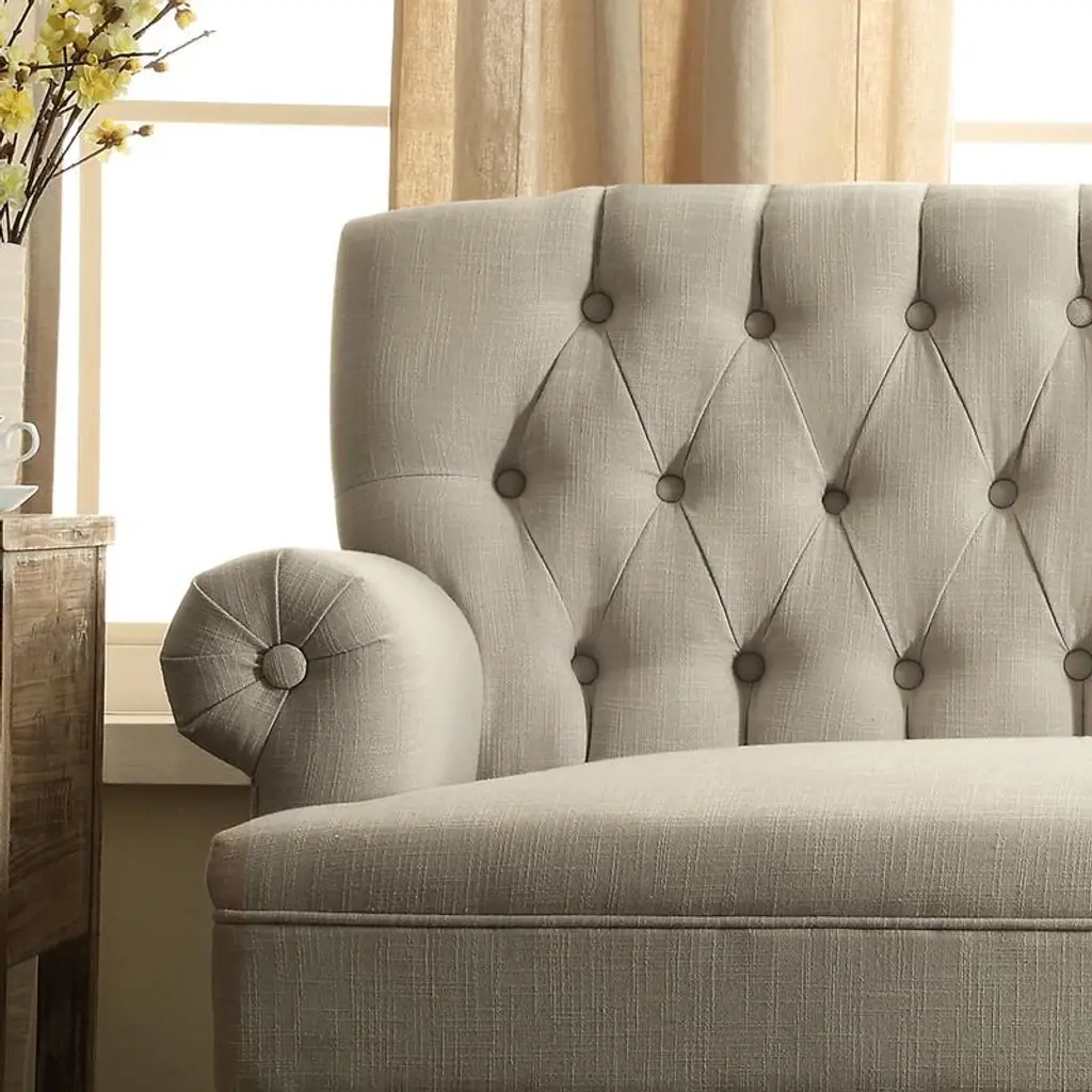 ▷Overall dimensions are 36'H x 63'W x 37'D ▷No assembly needed for immediate use upon arrival ▷Light gray shade fits seamlessly with any decor ▷Recessed arms enhance elegance and ease of access ▷Traditional style adds warmth to your living area