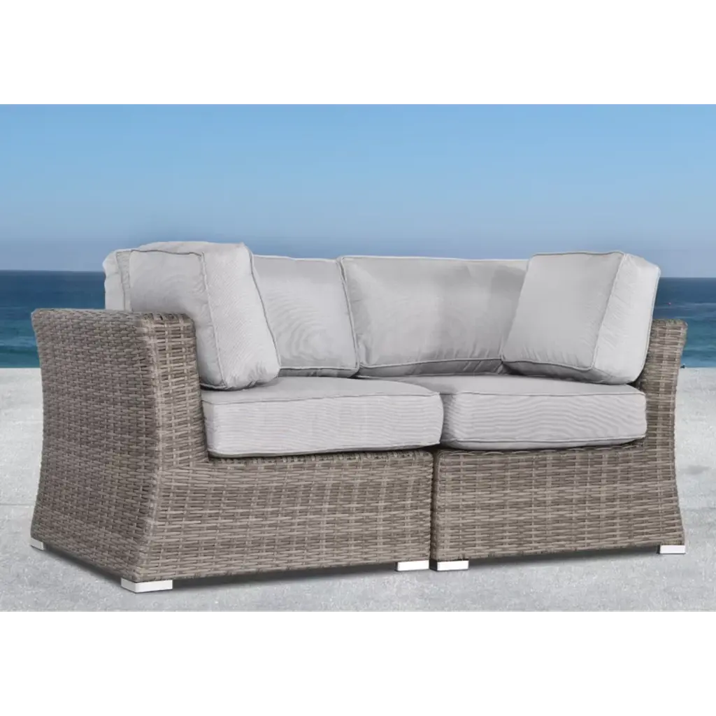 Fully Assembled 66'' Wide Outdoor Wicker Loveseat with Cushions Enhance your outdoor space with our Fully Assembled 66'' Wide Outdoor Wicker Loveseat, designed to bring a cozy, beachy vibe to your porch, sunroom, or patio. This loveseat features a classic woven texture crafted from durable wicker/rattan, showcasing a traditional silhouette with a flat top, flared arms, and sturdy block feet. The loveseat comes in a neutral mixed grey hue, making it easy to integrate into any decor. It includes six foam-filled olefin cushions that offer inviting comfort while being fade-resistant and water-repellent. Perfect for outdoor settings, this loveseat resists water, UV rays, mildew, and rust, ensuring it remains a beautiful and functional addition for years to come. Specifications: Overall Dimensions: 26" H x 66" W x 33" D Seat Height (Without Cushion): 13" H Seat Depth: 33" D Back Cushion Thickness: 7" D Cushion Dimensions: 27" W Overall Product Weight: 68 lb. Seating Capacity: 2 Details: Material: Wicker exterior and foam upholstery fill Cushion Durability: Water, UV, and fade resistant for year-round use Removable Cushions: Yes, with machine-washable covers for easy maintenance Upholstery Material: Polypropylene/Olefin Frame Colour: Mixed Grey Assembly: Assembly Required: No