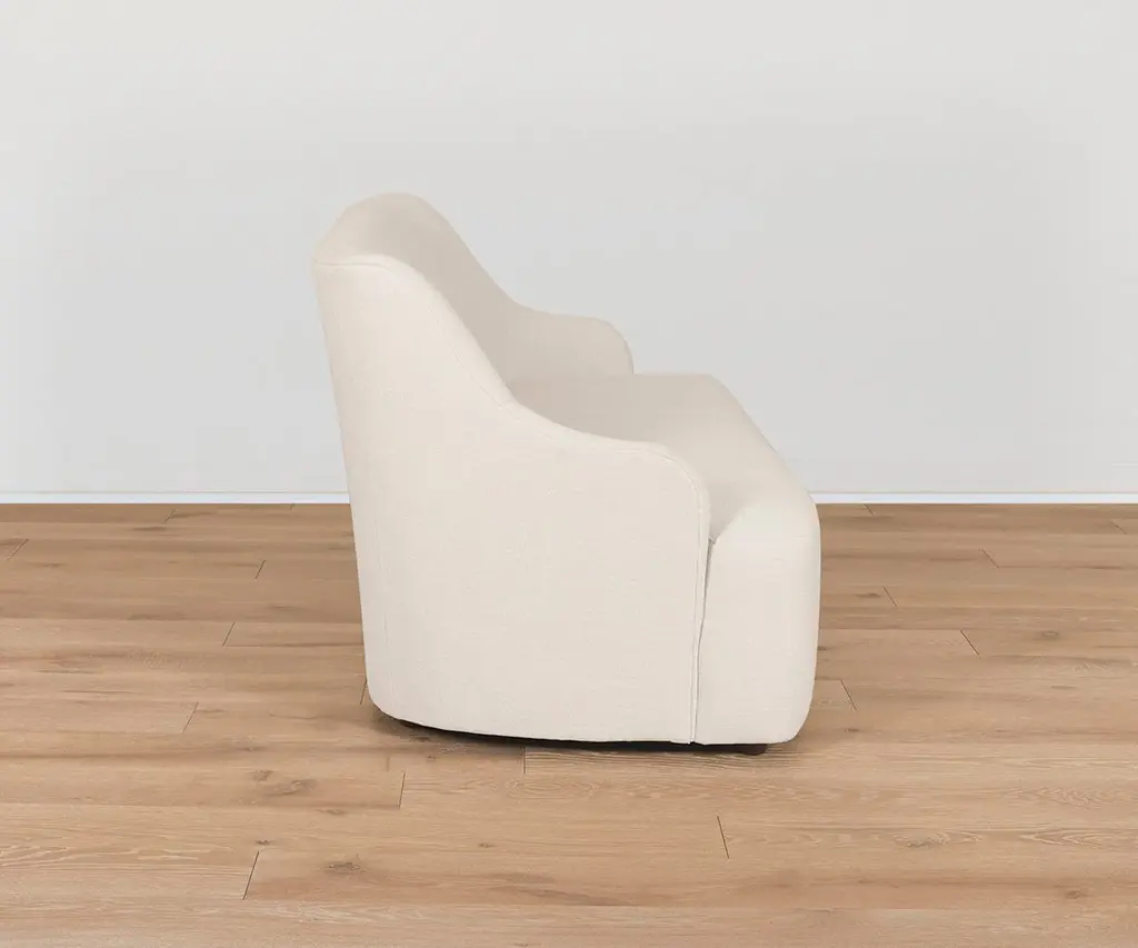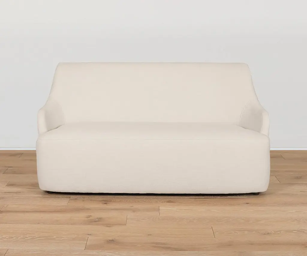 The Ennio Settee adds convenient seating to entryways and other smaller spacesalong with a sleek, contemporary edge. Its tight-back design and slim, sloped arms are a perfect fit for compact areas, while pairing effortlessly with the Eliseo King Bed for a coordinated look. Available for custom order. Made in the USA.