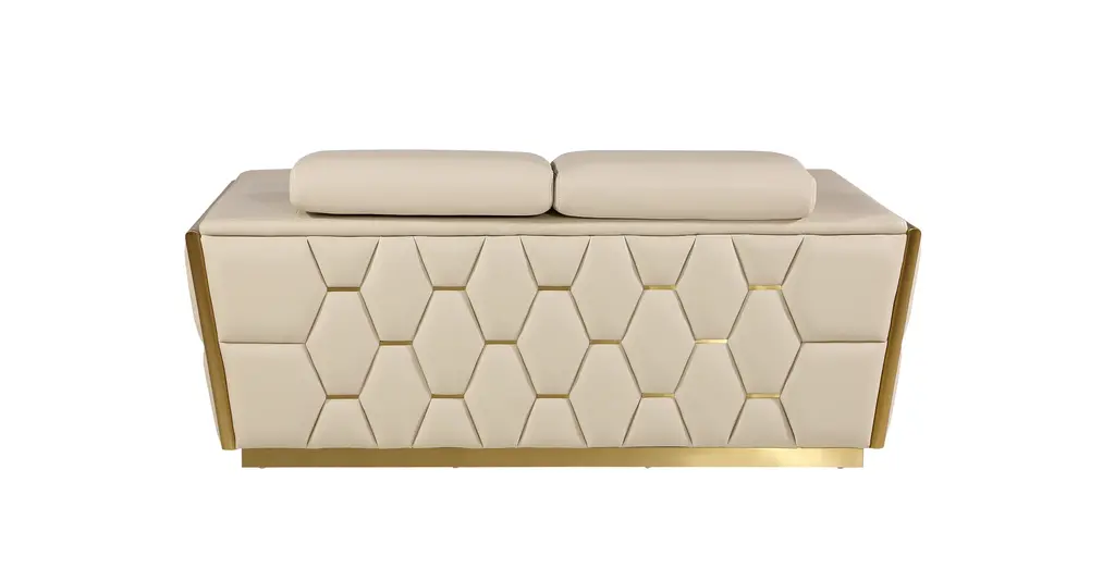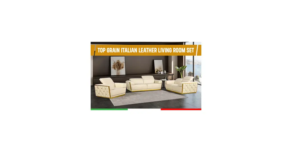 Compelling in its simple yet cutting edge style, this sofa set is a bold take on contemporary design. The sleek, art deco tufting is met with grand cloud-like seat cushions to create the statement making structure. Covered with Top-Grain Italian Leather in a beautiful color that continued that modern, sleek design.?Kiln-Dried hardwood frame with reinforced corner blocks?Soft-padded frame made with polyurethane foam wrapped in polyester fiber?8-gauge sinuous spring construction?3-layer high-density foam cushioning?Low profile solid stainless-steel legStarting from the design to the finished product, each step of the production process is checked rigorously for quality. The selection of top grain leather for the upholstering and solid Brazilian wood for the sofa frame is done with utmost respect for the finest raw materials.Italy is world renowned for high quality leather. You can smell and feel and see its high quality in every sofa set.