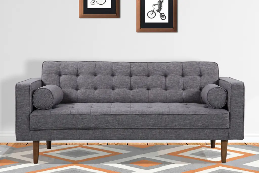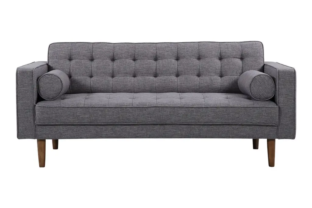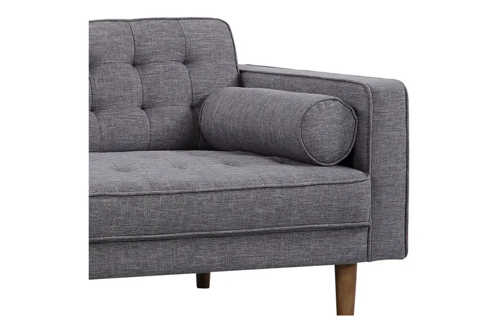 This handsome Erikson Loveseat from Sussex Home Solutions will give your home an abstract look in whatever room you place it. The tufted bench seat and dark grey linen gives you comfort and style anytime you sit down. The whole look is enhanced by the walnut legs to create a piece that will go with most dcor.