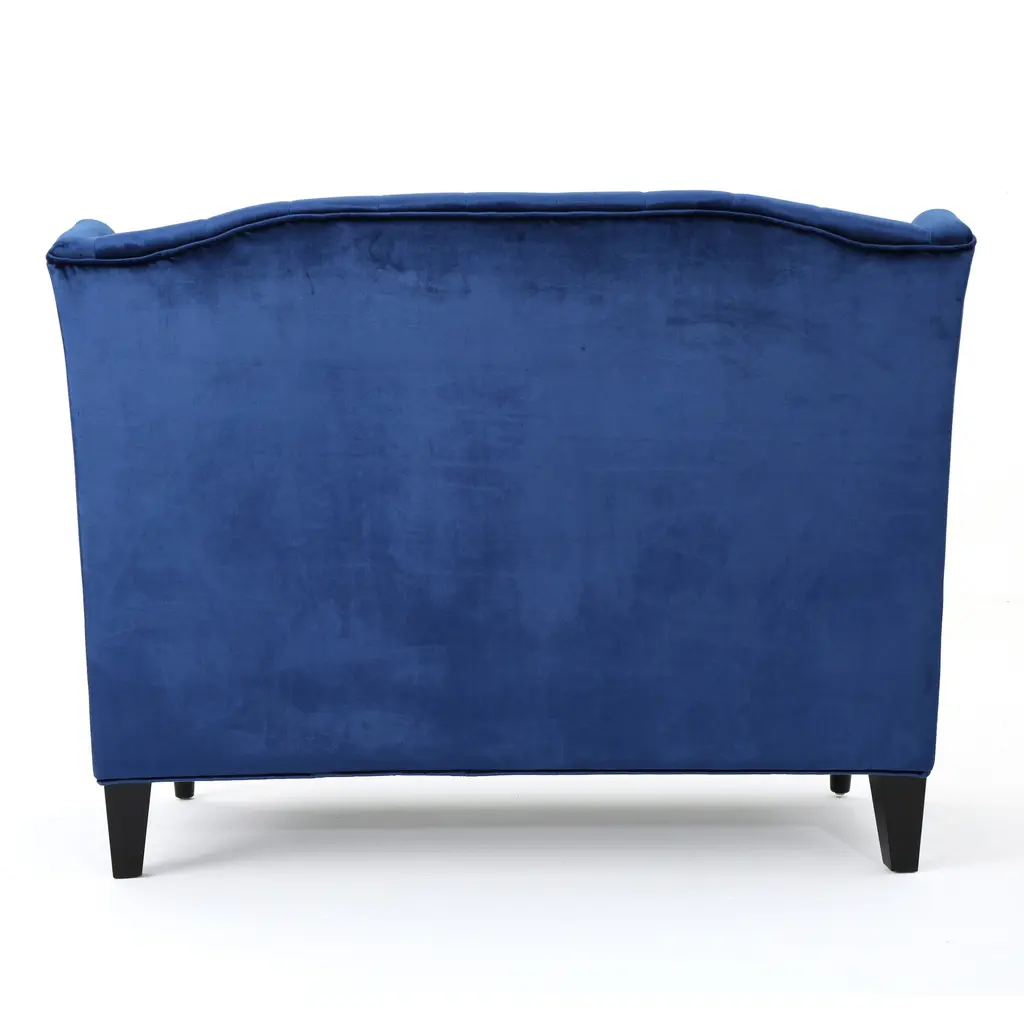 Fabric Loveseat 50 Inch Wingback Design Button Tufted Contemporary Legs - Navy Blue