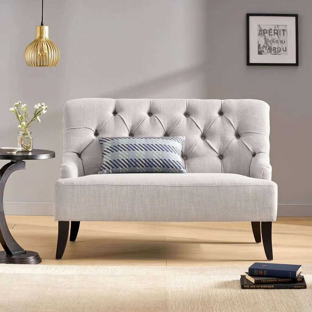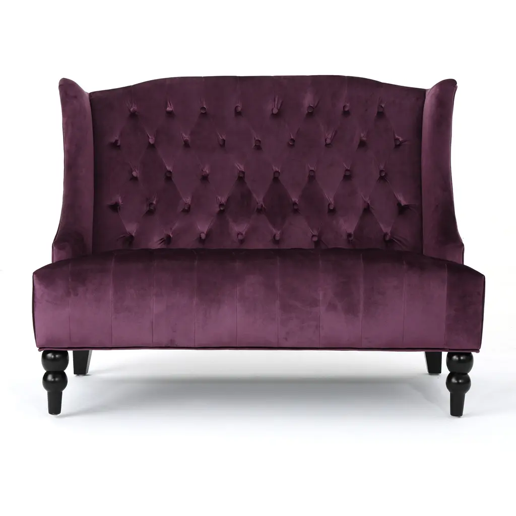 Product FeaturesCONTEMPORARY DESIGN: Our loveseat has the look, feel, and design of contemporary style with influences of traditional design, featuring clean lines and plush accents. With beautiful curves and refined structure, this piece brings out a simplistic style that emphasizes comfort and functionality.WINGBACK DESIGN: Our wingback loveseat is framed by two “wings” that bring a gorgeous classic touch to this piece. This is designed to trap heat and shield your body from drafts, allowing the backrest both style and functional comfort to any room.BUTTON TUFTED DIAMOND STITCH: The button tufted stitching in the seating and backrest offers an extra touch of sophistication that enhances its contemporary design. The diamond stitch pattern adds a bit of texture without sacrificing any comfort.TURNED LEGS: Finished with gracefully turned legs, this loveseat is the epitome of exquisite design. This brings a gorgeous hand-crafted feel that is highly decorative and eye-catching.ASSEMBLY REQUIRED: Some assembly is required for this loveseat. All of the instructions and tools needed for assembly are included.