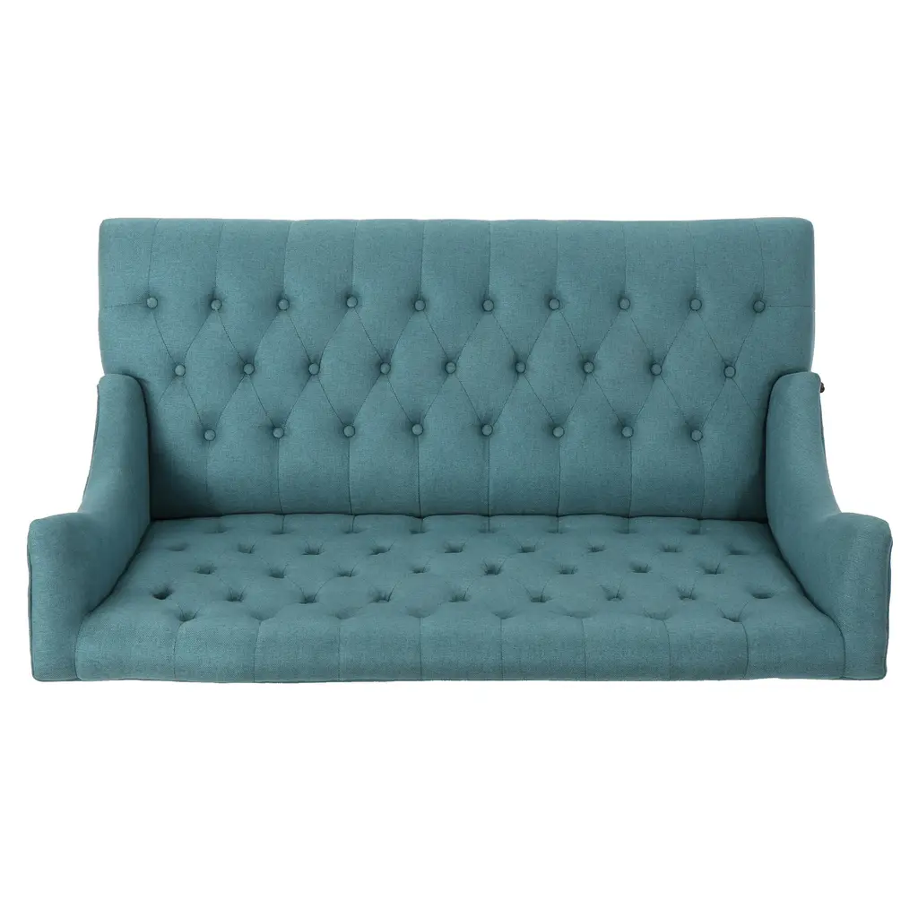 Fabric Loveseat 50 Inch Wingback Design Button Tufted Contemporary Legs - Teal