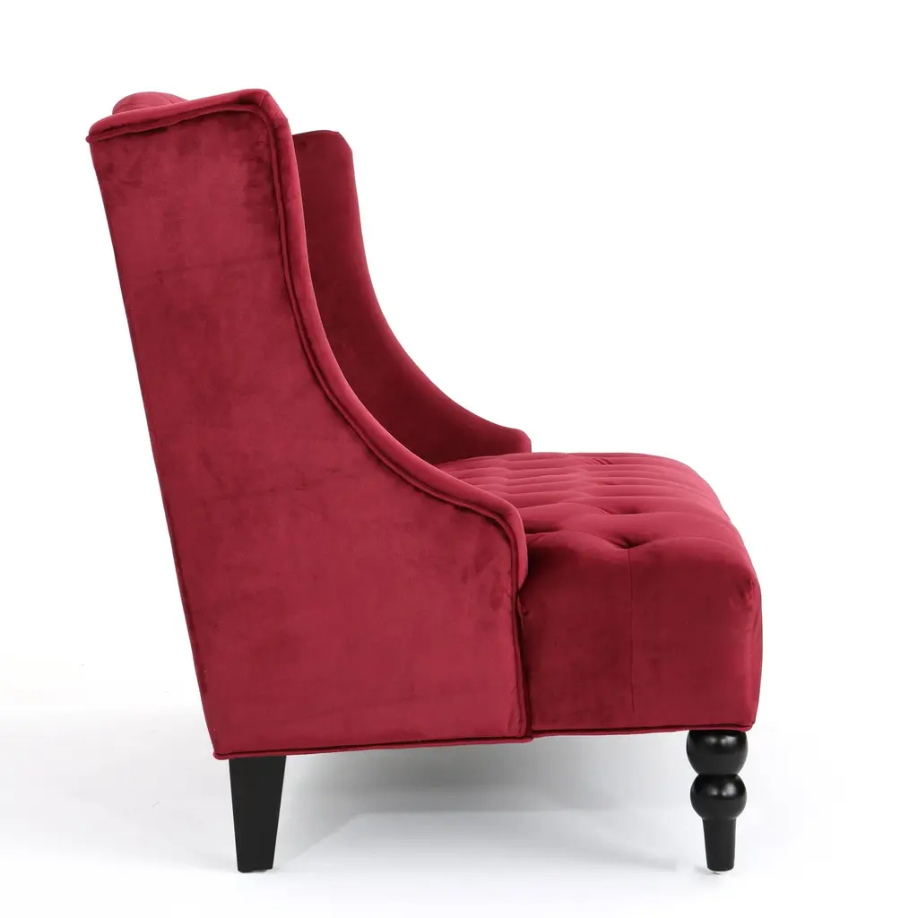 Fabric Loveseat 50 Inch Wingback Design Button Tufted Contemporary Legs - Wine Red