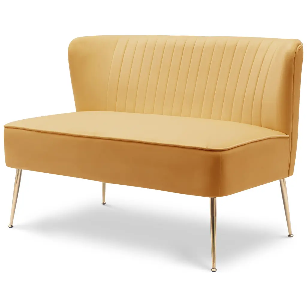Farrah Upholstered Velvet Polyester 46" Wide Loveseat - Armless/ Scalloped Back - Mustard