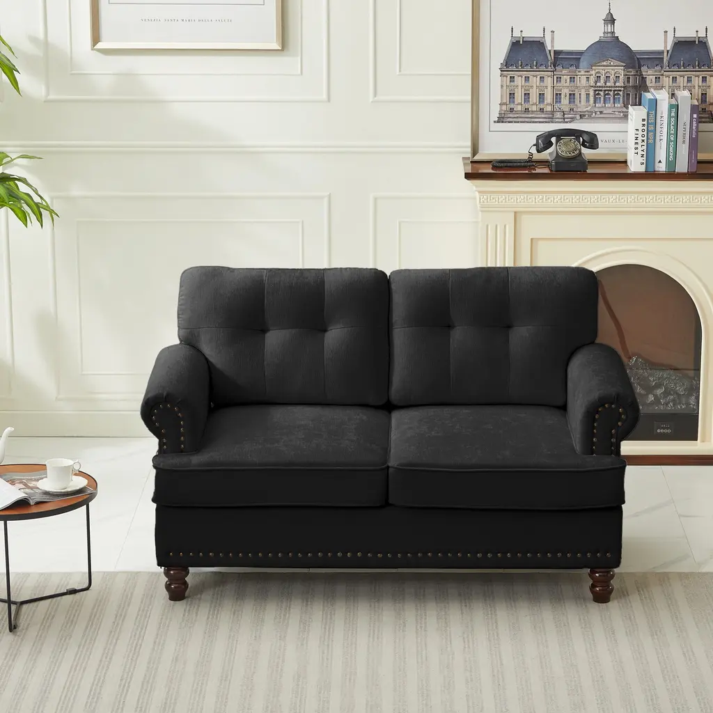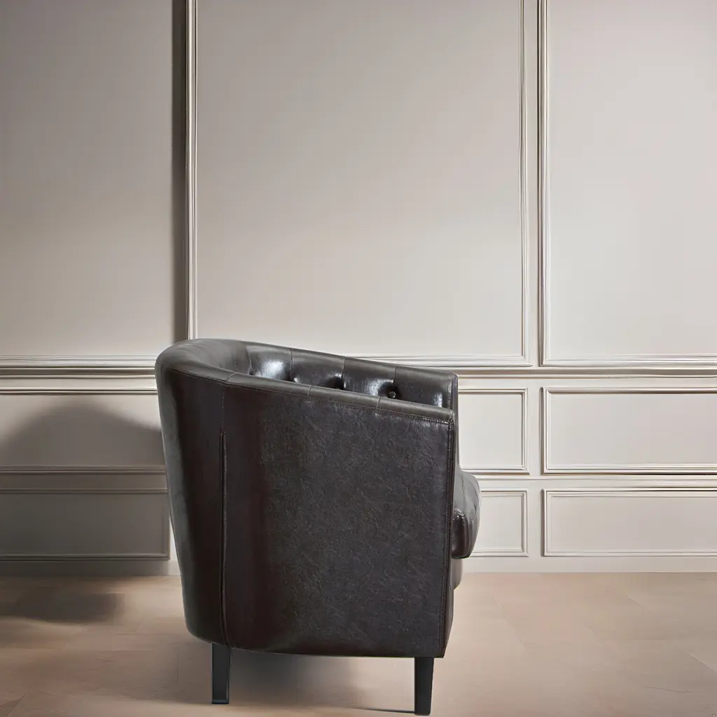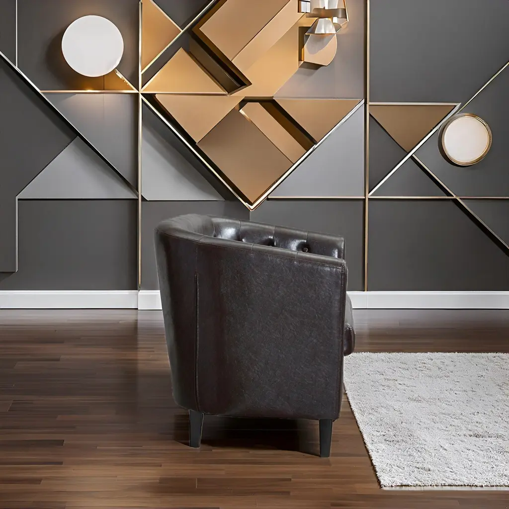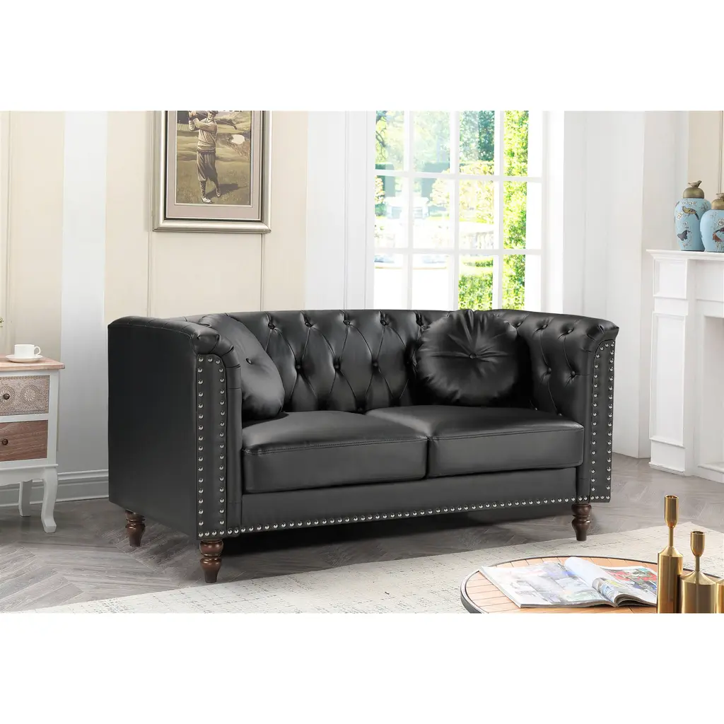 Product Description: Enhance your space with this Button Tufted Faux Leather Barrel Loveseat, featuring a mid-century modern design, plush seating, and a space-saving build. Perfect for small spaces, bedrooms, and living rooms, this elegant 2-seater sofa offers both style and comfort. Features: