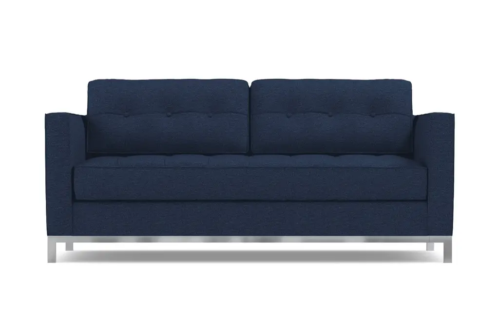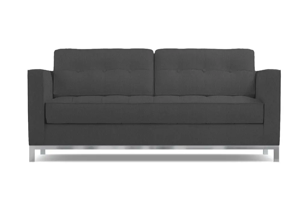 The Fillmore Sofa is the epitome of sophistication and timeless design and is sized just right for your apartment. The button-tufted pillows feature piping for added dimension and the stainless-steel base highlights its modern style. The Fillmore doesn't sacrifice comfort for style, however. The deep seat offers plenty of room for lounging, so we're sure this will become one of your favorite pieces. Created by interior design wunderkind Kyle Schuneman exclusively for Apt2B, the Fillmore is available in your choice of colors and fabrics, so whether you're looking for a neutral shade or you're leaning more toward vibrant pink or green, we've got you covered. This sofa was made in the United States and features a limited lifetime warranty. Apt2B offers a 100-percent satisfaction guarantee. The ultimate in sophistication and downtown style, The Fillmore is a hot addition to any room that needs a boost. A full stainless steel base and a nice deep seat make this a sofa you will have for years and the tufting on the seat and back cushions make it a timeless design.