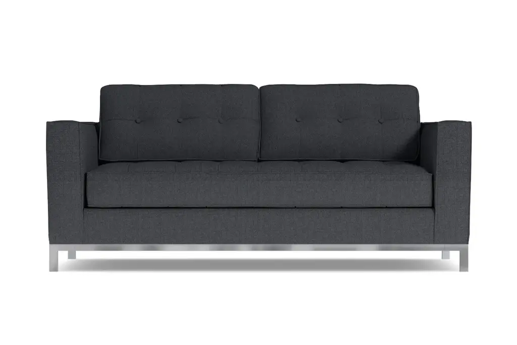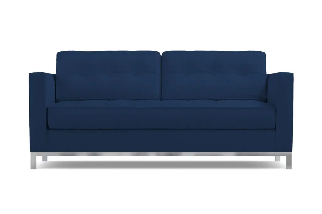 The Fillmore Sofa is the epitome of sophistication and timeless design and is sized just right for your apartment. The button-tufted pillows feature piping for added dimension and the stainless-steel base highlights its modern style. The Fillmore doesn't sacrifice comfort for style, however. The deep seat offers plenty of room for lounging, so we're sure this will become one of your favorite pieces. Created by interior design wunderkind Kyle Schuneman exclusively for Apt2B, the Fillmore is available in your choice of colors and fabrics, so whether you're looking for a neutral shade or you're leaning more toward vibrant pink or green, we've got you covered. This sofa was made in the United States and features a limited lifetime warranty. Apt2B offers a 100-percent satisfaction guarantee. The ultimate in sophistication and downtown style, The Fillmore is a hot addition to any room that needs a boost. A full stainless steel base and a nice deep seat make this a sofa you will have for years and the tufting on the seat and back cushions make it a timeless design.