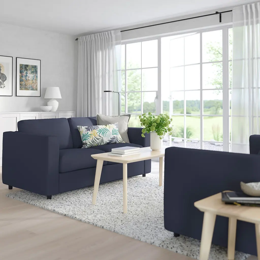 FINNALA Loveseat - Orrsta black-blue. This comfortable sofa has pocket spring seat cushions with high resilience foam and a top layer of wadding. It provides a nice comfort and support for your body while maintaining the shape of the seat cushions.