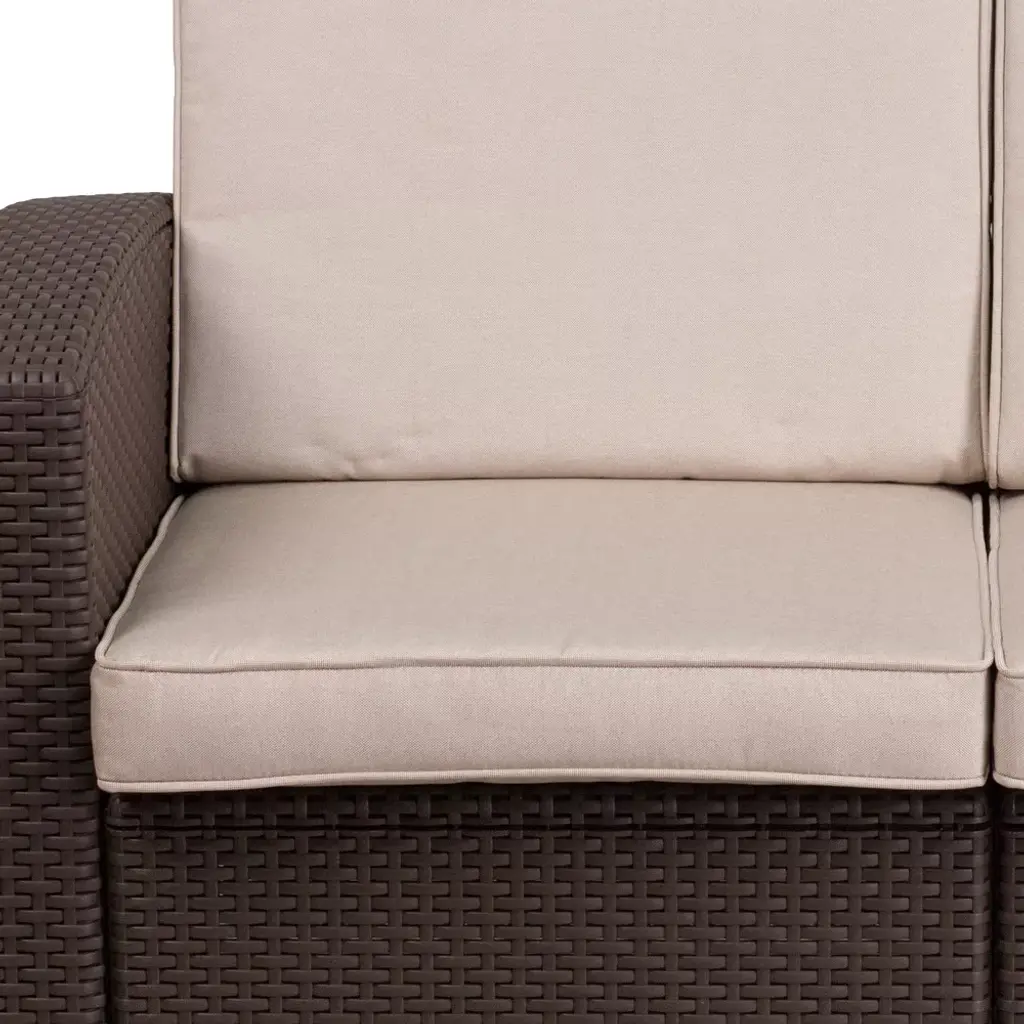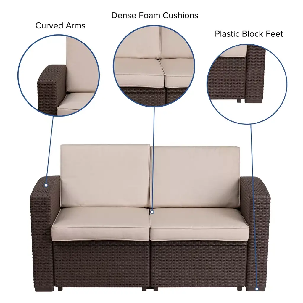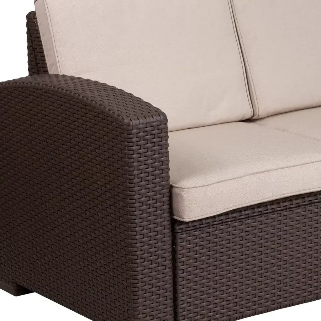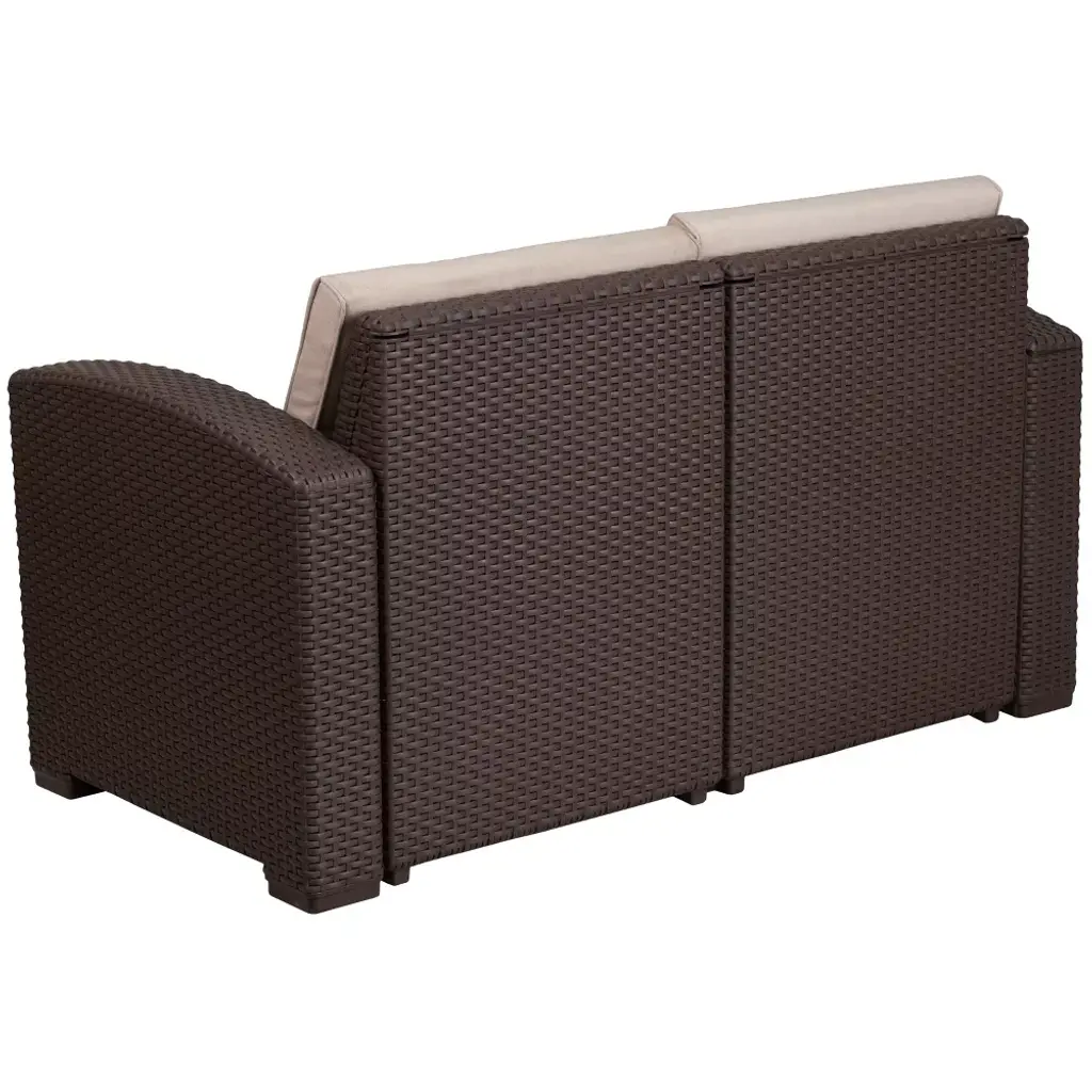 Flash Furniture Chocolate Brown Faux Rattan Loveseat With All-weather Beige Cushions