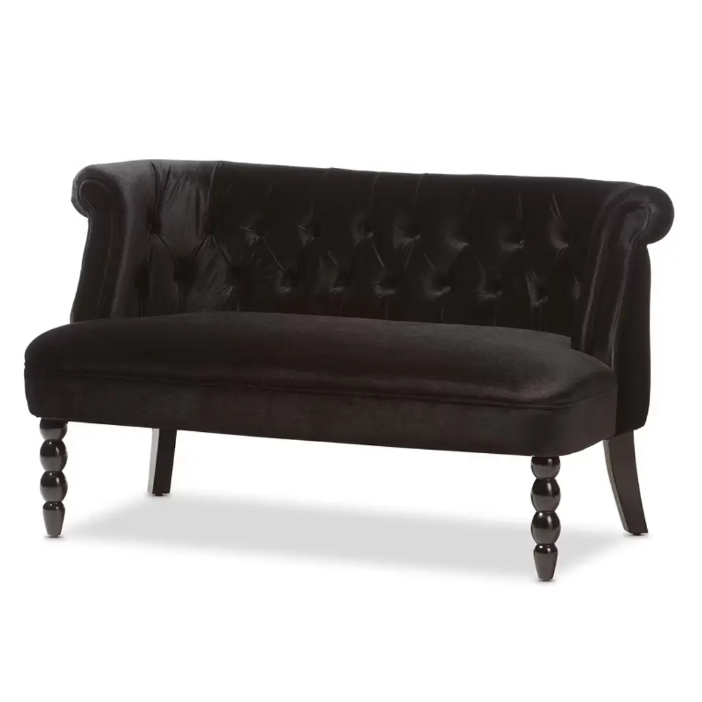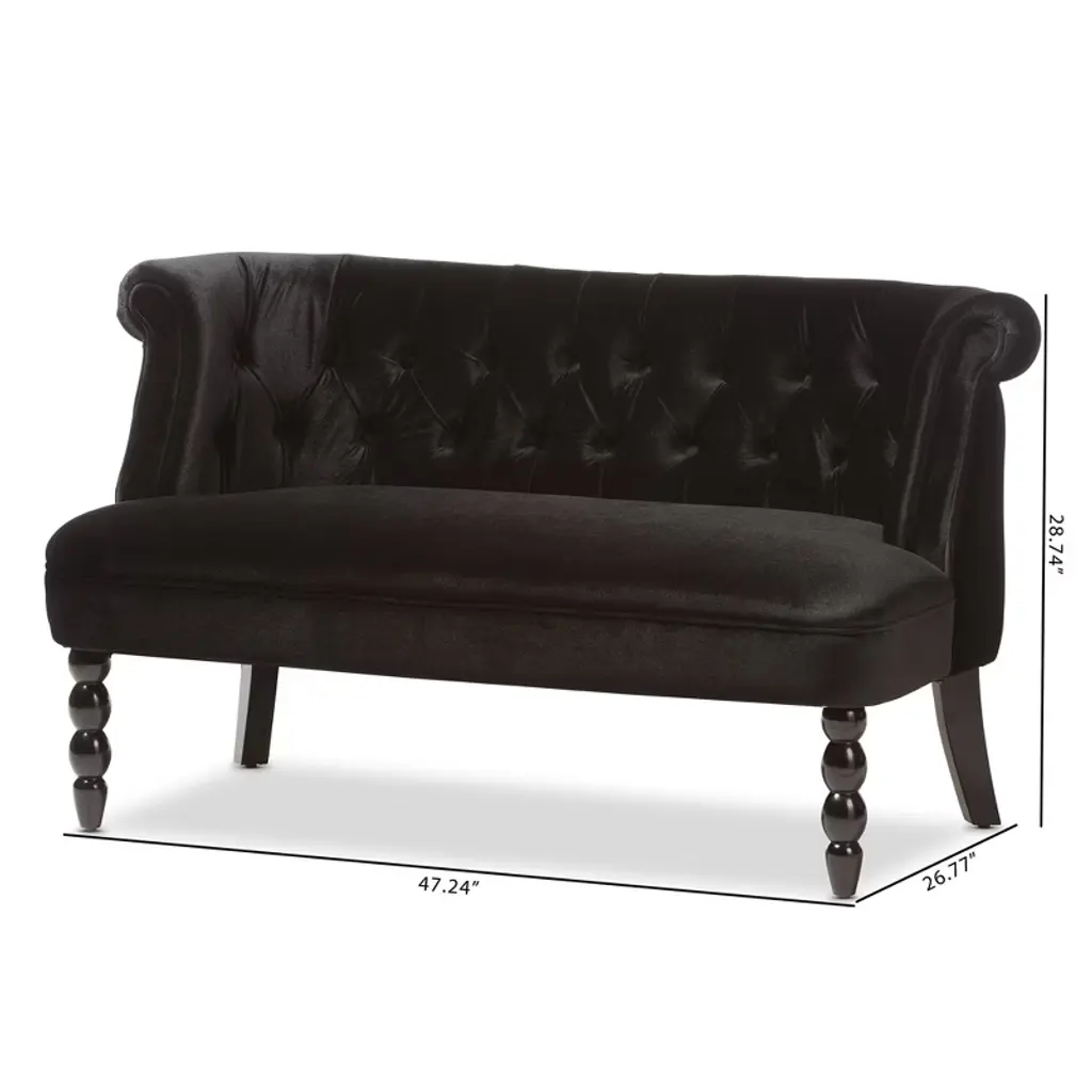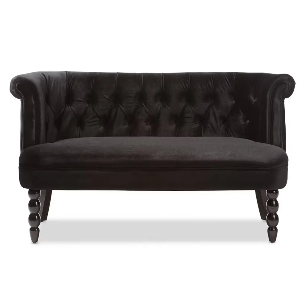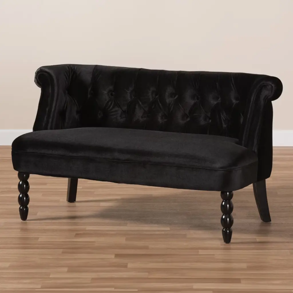 Flax Victorian Style Contemporary Velvet Fabric Upholstered 2 Seater Loveseat Black - Baxton Studio: Elegant Polyester, Tufted Design, Wood Frame