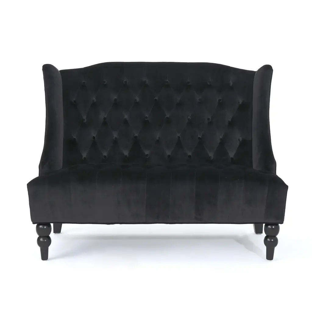 Flax Victorian Style Contemporary Velvet Fabric Upholstered 2 Seater Loveseat Black - Baxton Studio: Elegant Polyester, Tufted Design, Wood Frame