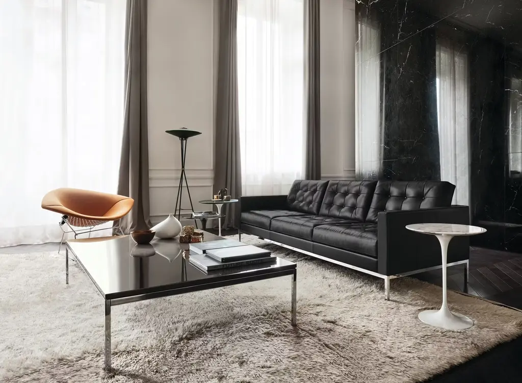Florence Knoll modestly referred to her furniture designs as the “meat and potatoes" of interiors, and to this day they hold the same iconic American appeal as that most basic and functional of meals. The Florence Knoll Sofa (1954) has the simple architectural lines and unparalleled construction of all modern classics. It's designed to last a lifetime, featuring solid wood inner frame, polished chrome outer frame, and no-sag seat suspension.
