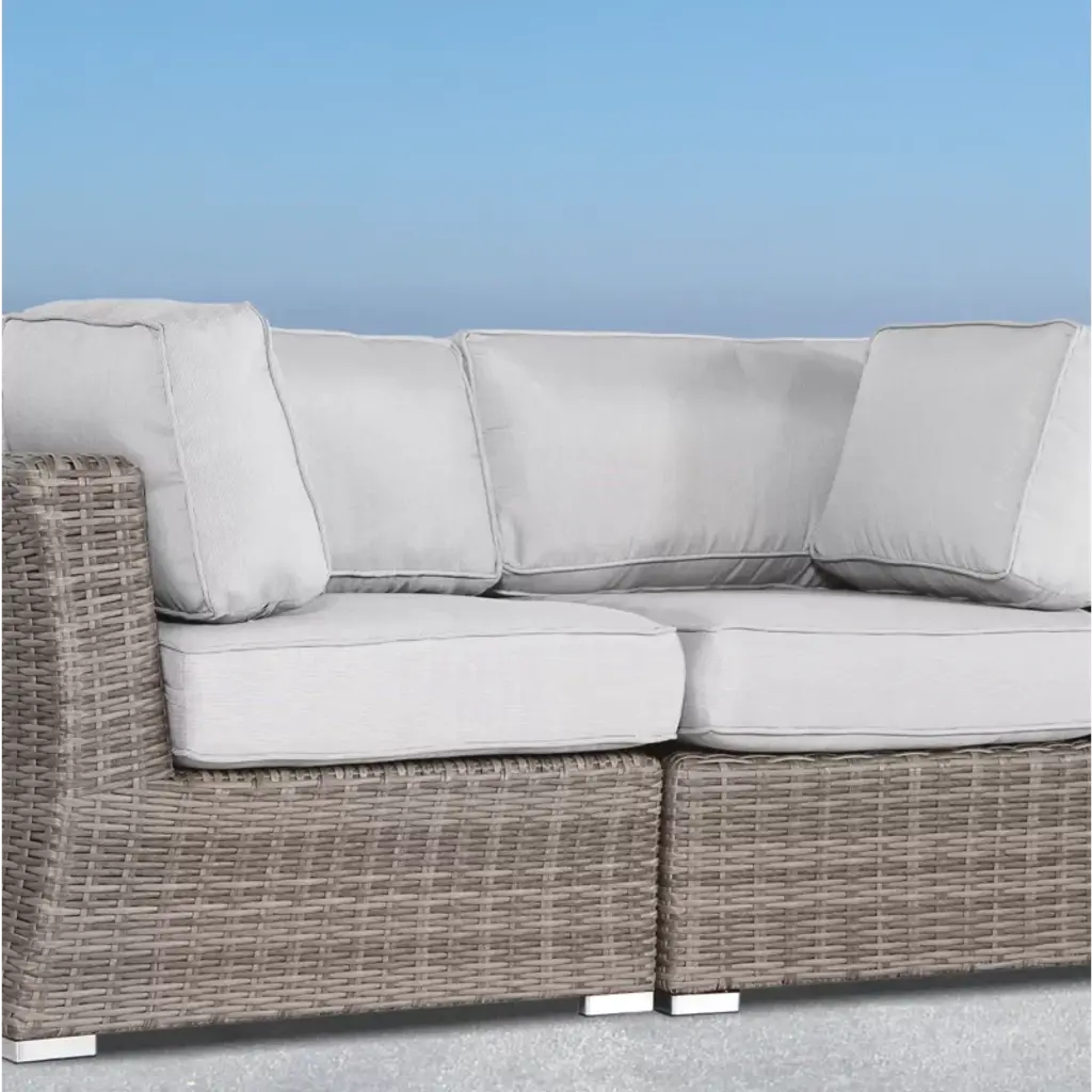 Fully Assembled 66" Outdoor Wicker Loveseat with Cushions Add a touch of cozy, beachy charm to your outdoor space with this stylish wicker loveseat. Perfect for your covered porch, sunroom, or patio, it features a classic woven rattan texture with a traditional silhouette, including a flat top, flared arms, and sturdy block feet. The neutral mixed grey color easily complements any decor, while six foam-filled olefin cushions provide inviting comfort. The cushions are fade-resistant and water-resistant, making them perfect for year-round use. Best of all, the loveseat is designed to resist UV rays, mildew, and rust for lasting durability. Specifications Overall Dimensions: 26" H x 66" W x 33" D Cushion Dimensions: 5" H Seat Height (Without Cushion): 13" H Seat Depth: 33" D Chair Back Height: 13" H (Seat to top of back) Back Cushion Thickness: 7" DCushion Color: Grey Details Product Type: Loveseat Frame Material: Wicker Seating Capacity: 2 Cushions Included: Yes (6 cushions total) Cushion Durability: Water-resistant, fade-resistant, UV-resistant, and suitable for year-round use Cushion Cover Material: Polypropylene / Olefin Cushion Fill Material: Foam Removable Cushions: Yes Machine-Washable Cushion Cover: Yes Country of Origin: China Product Care: Clean with soap and water, machine washable cushion covers Assembly Assembly Required: No This fully assembled 66" wide wicker loveseat brings a relaxed yet refined style to your outdoor retreat, offering comfort, durability, and easy care. Bring beachy, cozy style to your covered porch, breezy sunroom, or patio retreat with this outdoor loveseat. Crafted from wicker/rattan with a classic woven texture, it features a traditional silhouette with a flat top, flared arms, and block feet. . A neutral hue makes it easy to pair with your ensemble, while its six foam-filled olefin cushions add a touch of inviting comfort – plus, the cushions are fade-resistant and sport a gray color. Our favorite? This sofa resists water, UV rays, mildew, and rust.