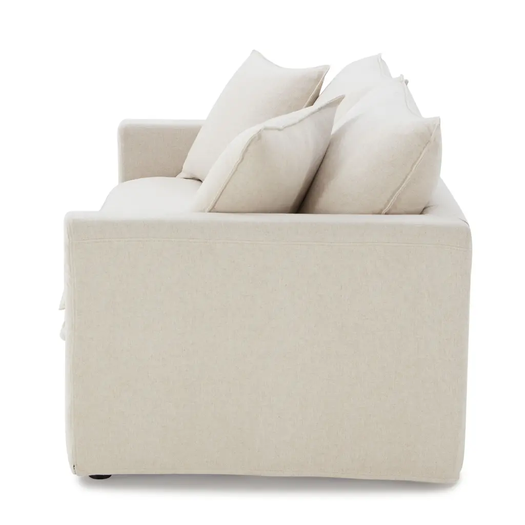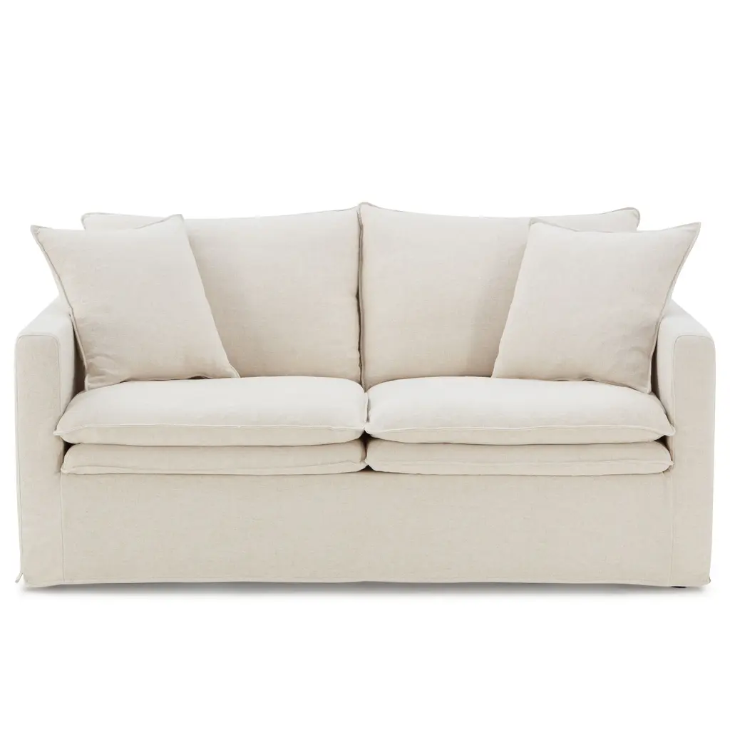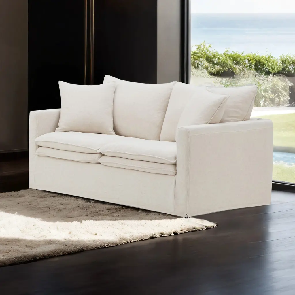 This transitional loveseat brings timeless elegance and cozy comfort to your living room. Available in light grey or taupe, it features linen upholstery and feather-blend-filled cushions for a luxurious seating experience. The narrow track arms, welt trim, and wooden legs create a polished aesthetic, while the eco-friendly certifications make it a sustainable choice. Features: Includes one (1) loveseat and two (2) pillows Available in two (2) color options: Light Grey or Taupe OEKO-TEX CERTIFIED FABRIC ensures sustainability and is skin-friendly STACKED CUSHIONS: Two seat cushions layered for extra comfort and support COMFORT: Feather-blend filling for plush cushions and pillows Multiple back pillows and seat cushions enhance relaxation Blends classic and modern elements for versatile look Materials: linen, feather blend, foam, wood, engineered wood Linen fabric offers a soft touch With removable back pillows, molding to your body for added comfort Welt trim adds a clean and tailored appearance Narrow track arms for chic design Wooden legs for support and long-lasting use FSC certified with responsibly sourced wood Seats up to two (2) people comfortably Made from sturdy solid wood for strength and durability Matching sofa and chair available, sold separately Easy assembly with included instructions Dimensions: Overall: 34.5 inches high x 67.5 inches wide x 38 inches deep Seat: 18.5 inches high x 23 inches deep Seat back: 16 inches high Weight capacity: 500 pounds Weight: 114 pounds Whether you are a deal seeker, trendsetter, or just window shopping, Furniture of America® is there for your every need. You'll find that we offer every style, from rustic farmhouse and urban industrial to French antique, mid-century modern, and glamorous chic; we welcome you to explore our ample style possibilities to find the perfect pairing for your personality. Furniture of America® is proud to be the family friend that always has your back. Product Care: To avoid upholstery discoloration and fading over time, do not place in direct sunlight Avoid dragging along floors; always lift when moving Avoid abrasive cleaners, harsh chemicals, and furniture polish Spot clean with a soft, dry cloth This product will ship to you in one (1) box.