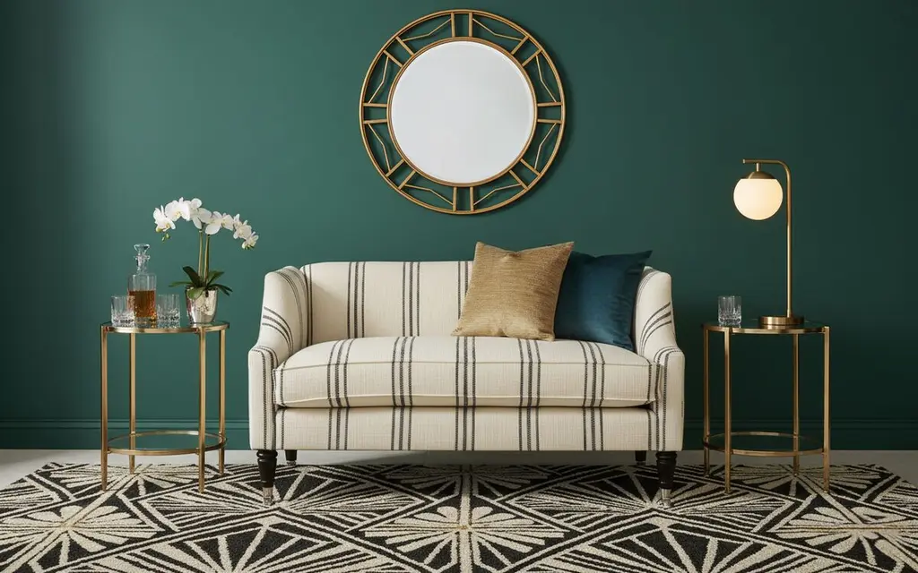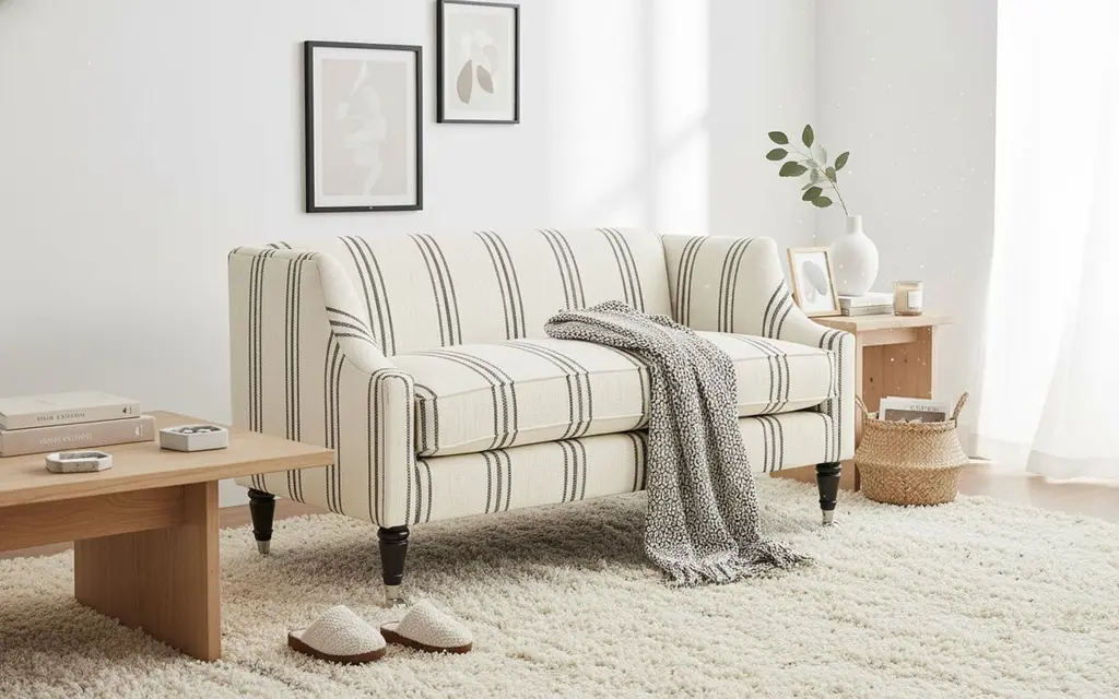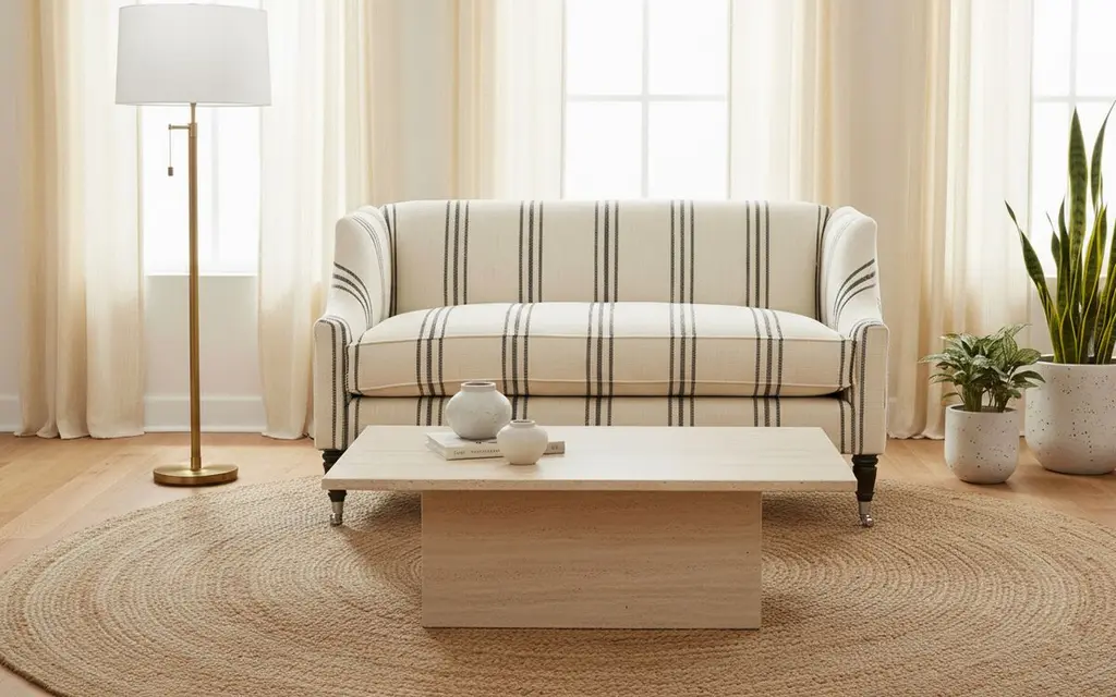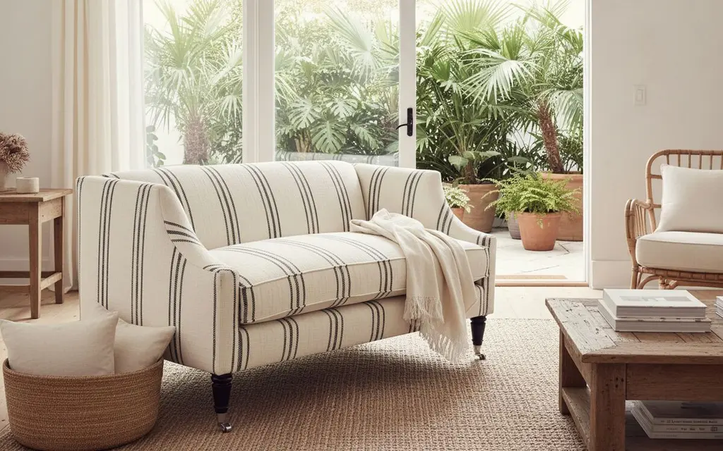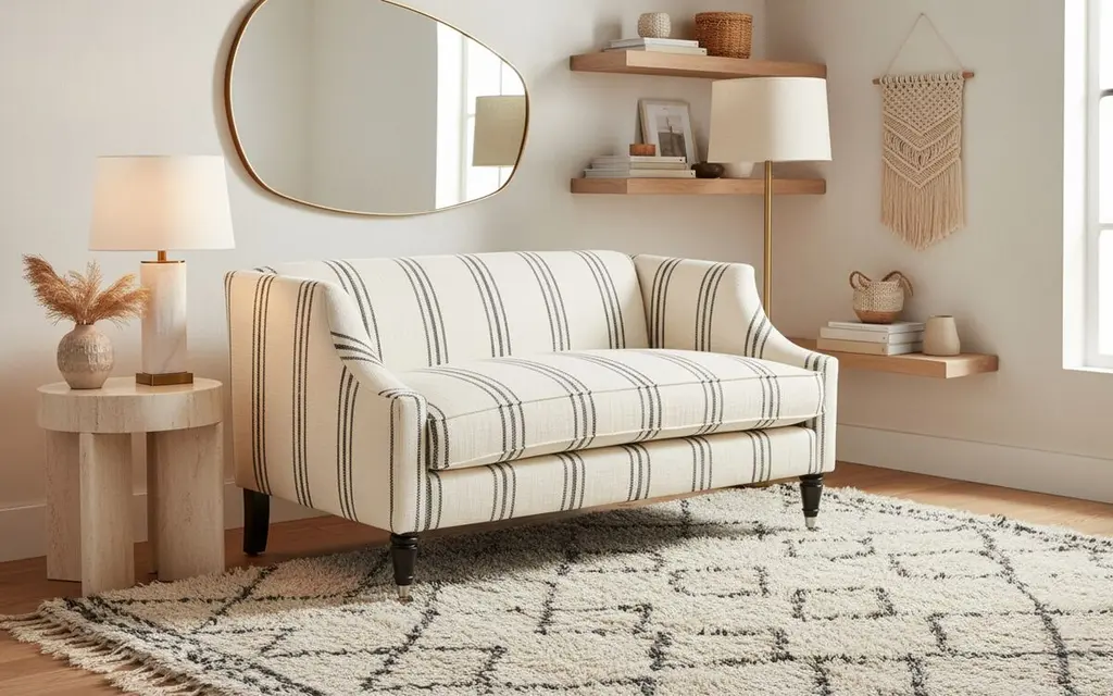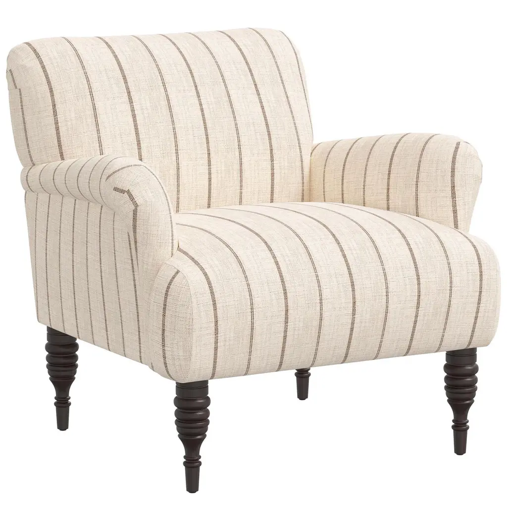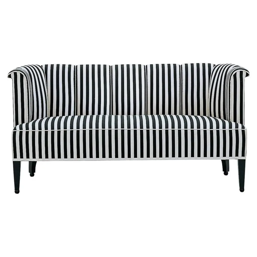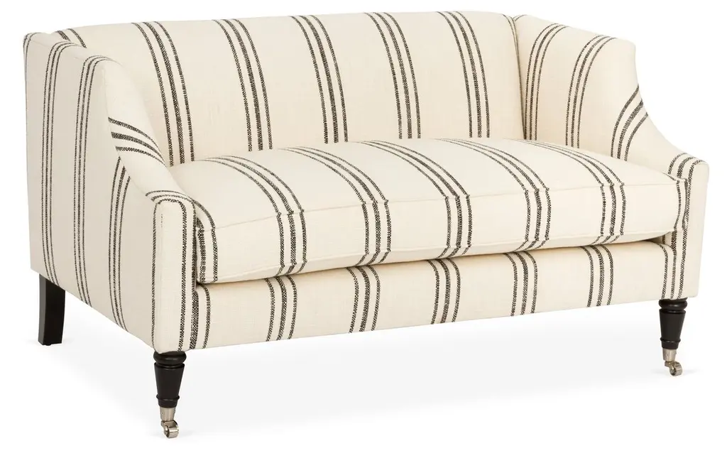 Gage Swoop-arm Settee, Ivory/black Stripe