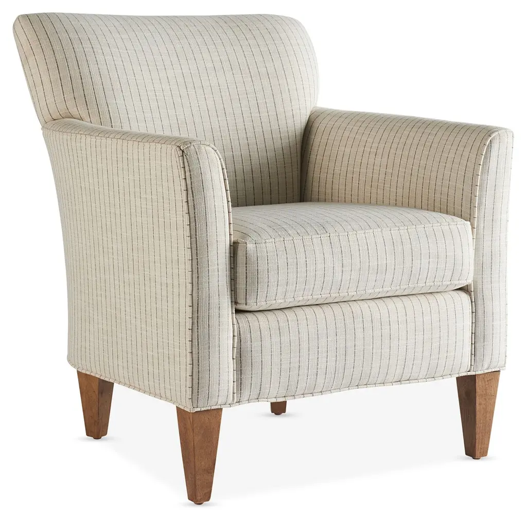 This swoop-arm settee boasts striped cotton upholstery and beautifully turned alder legs. Generous foam-and-fiber padding ensures long-lasting comfort and support, while front caster wheels protect sensitive floors from scratching and marring. Handcrafted in the USA.