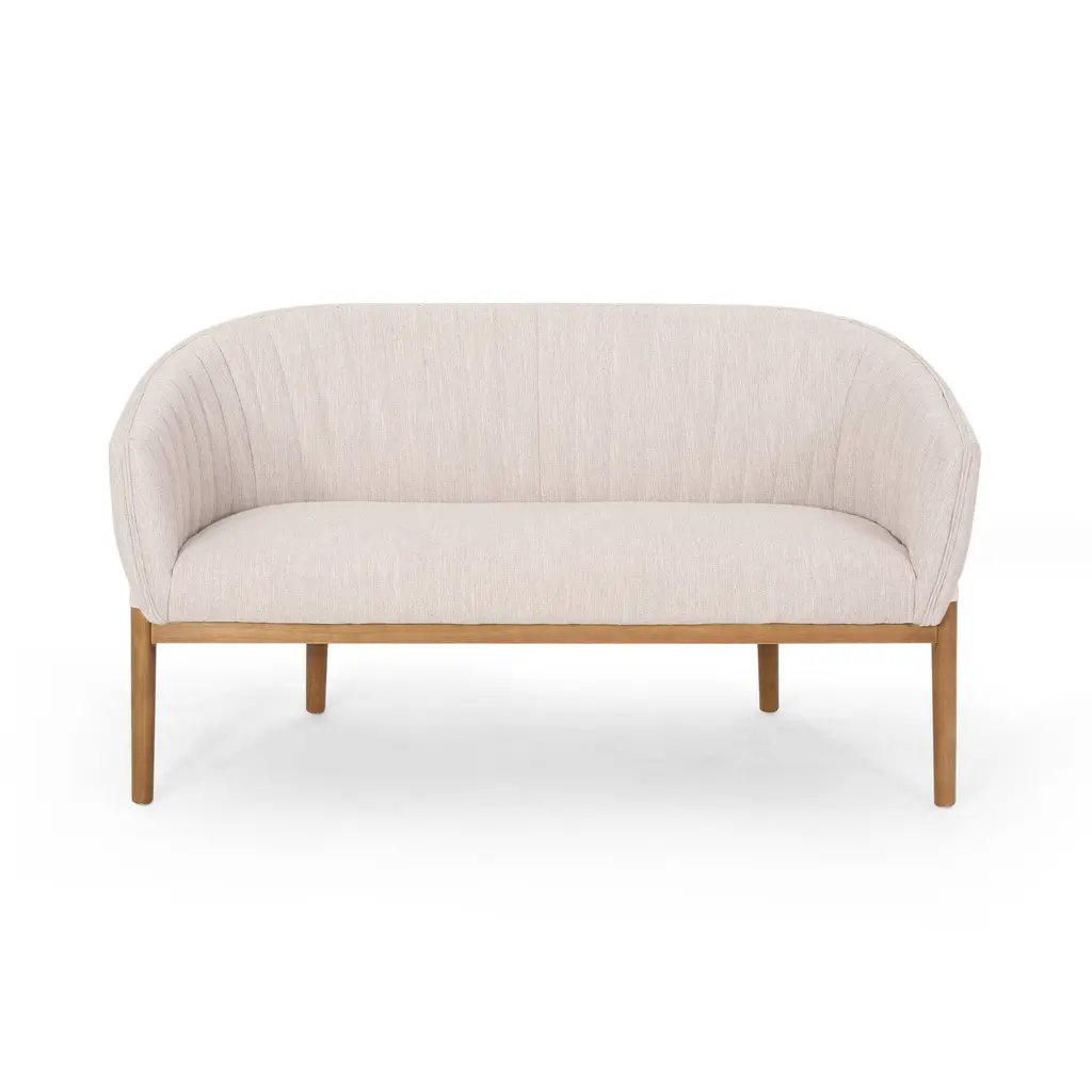 Lend luxe, mid-century modern design to your space with this glamorous loveseat. The graceful style is highlighted with plush channel stitching and an encompassing curved backrest for exquisite comfort and striking poise. The loveseat is finished with beautiful wood legs, bringing a stunning look and outstanding durability to your home. Features: Dimensions: