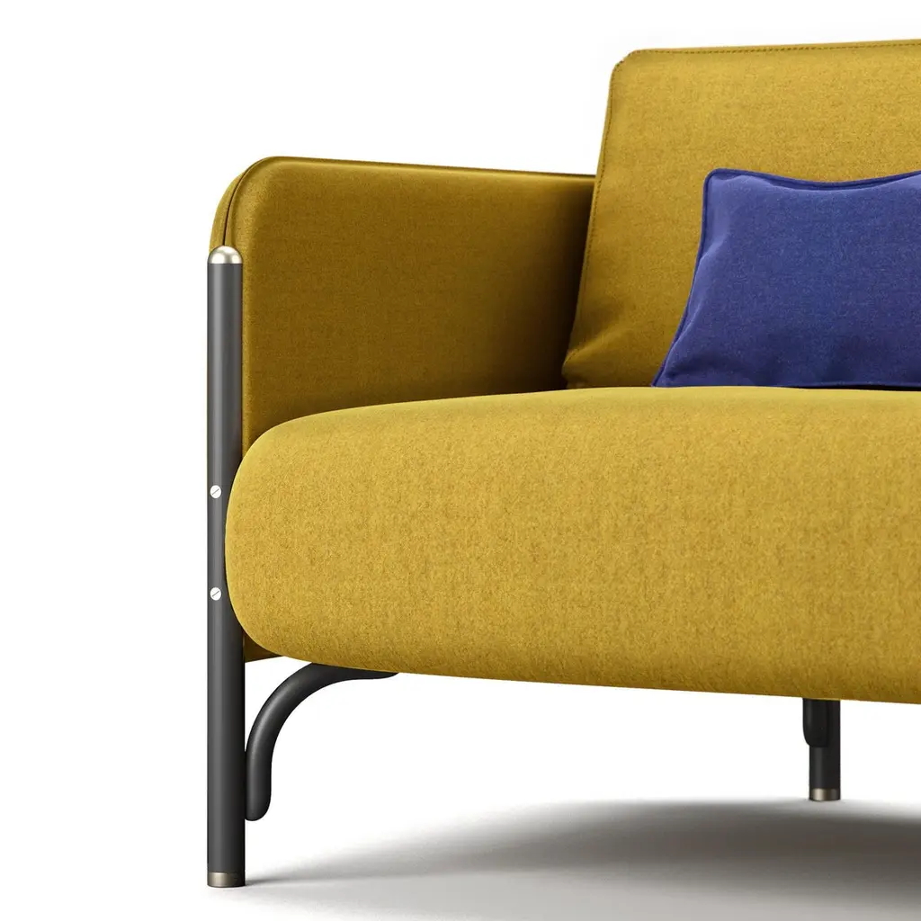 Dainelli Studio, owned by the creative duo of Leonardo and Marzia Dainelli, designs JANNIS, a collection of upholstered furniture that are eminently suitable for contract use.Two and three-seater sofa and lounge chair, with judicious dimensions and slim proportions. Jannis is defined by a contemporary rigour that draws inspiration from the past, revealing its personality in the details: the wooden structure, lightweight to the eye but solid, holds the single seat cushion and the backrest, and is characterized by the metal feet with a brass finish of the feet. The front leg rises to define the thin profile of the armrest and closes in the semi-circular tip, again with a brass finish. The frame and legs are connected by steam-curved beech wood arches, an element of continuity with the heritage of Gebrüder Thonet Vienna.Additional Info:Materials: Beech wood, upholstery, brass, and foamDimensions: H 32.2 x W 57 x D 31.4 inchSeat height: 16.5 inchArm height: 24 inchWIENER GTV DESIGN is a trademark which distinguishes the historical and contemporary collection of Gebrüder Thonet Vienna GmbH (GTV)