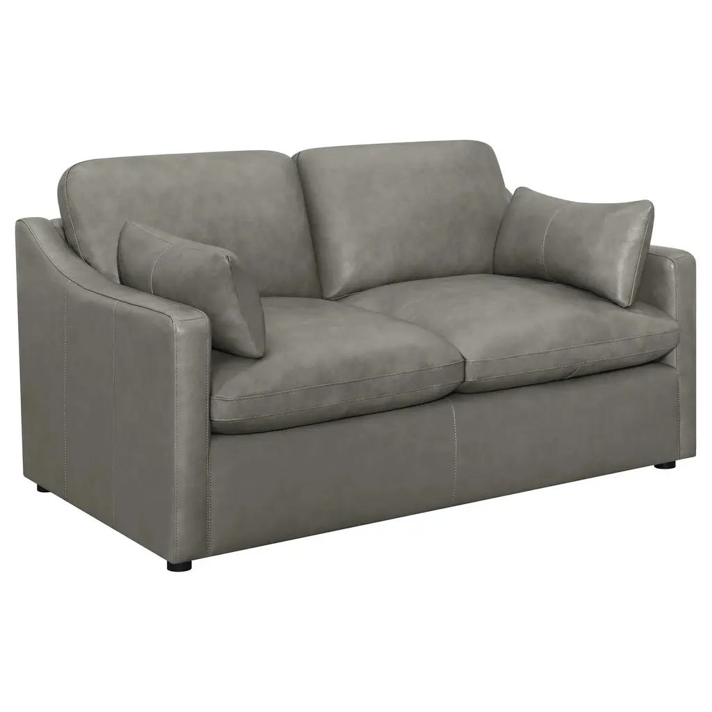 Grayson Leather Upholstered Sloped Arm Loveseat Grey - Grey