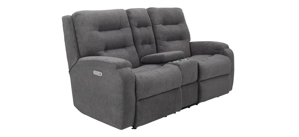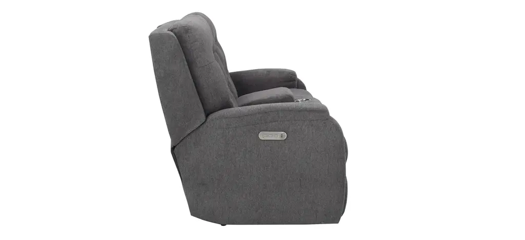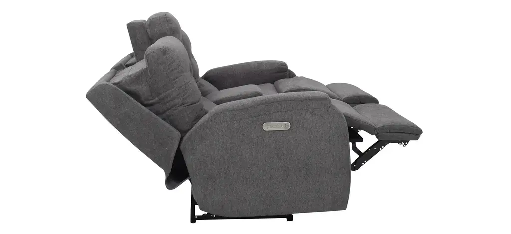 Hooray for Halenbeck! Lean back and relax into softness. The Halenbeck Triple Power Reclining Console Loveseat provides supportive, stylish comfort and modern-day convenience in a gorgeous shade of gray.