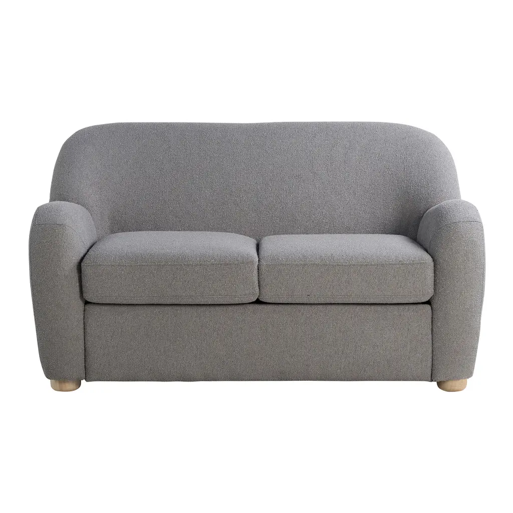 The Harmony loveseat invites relaxation with a wonderfully rounded silhouette covered in plush and tactile boucle upholstery. This contemporary two-seater softens small spaces with the organic lines of its swoop arms and curved back. Durably crafted with a hardwood frame and fully upholstered save for chic circular legs, its cozy contours ensure a sumptuous seating experience with high-density foam padding and premium pocket coils.
