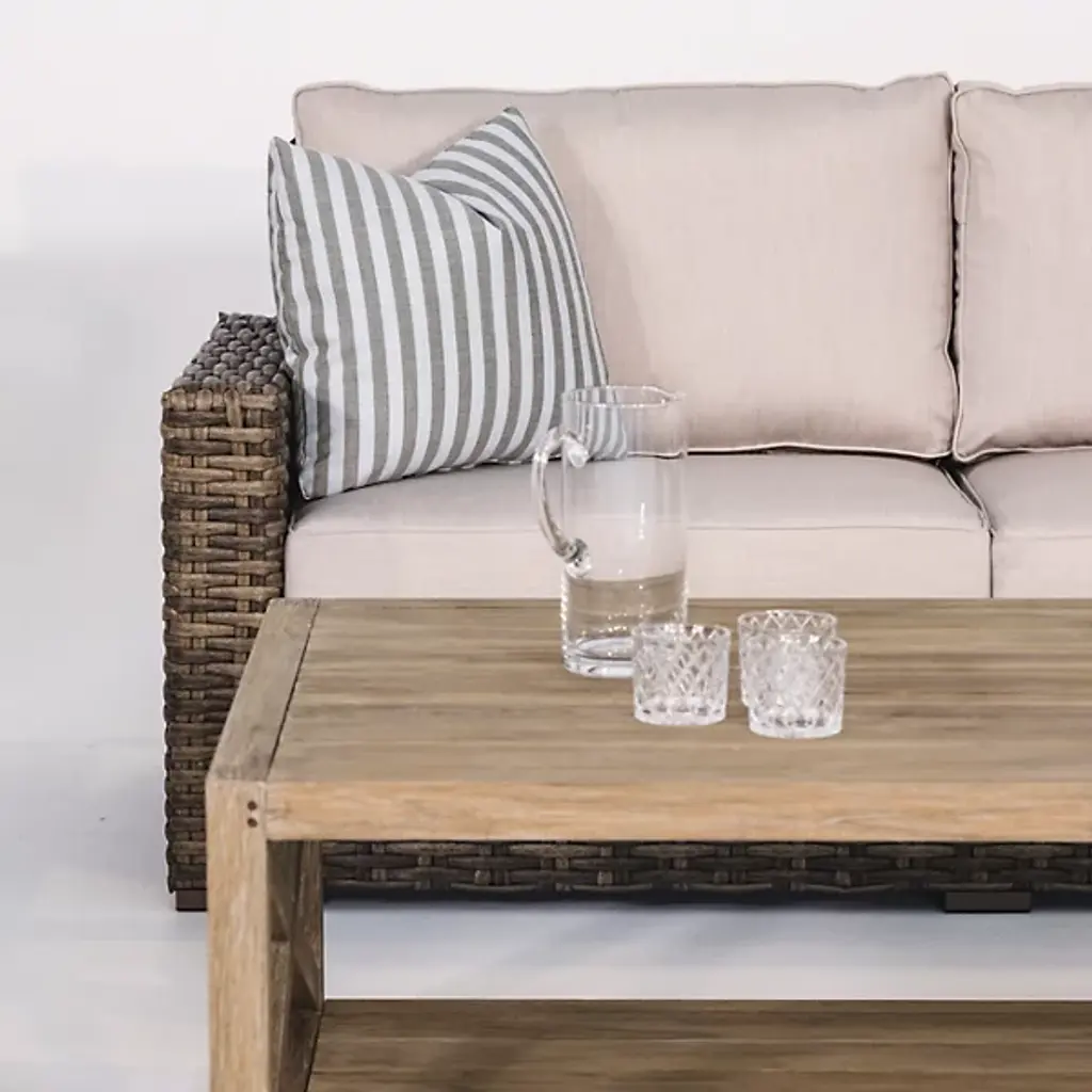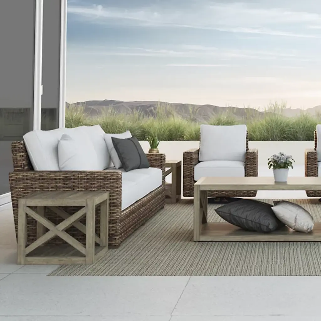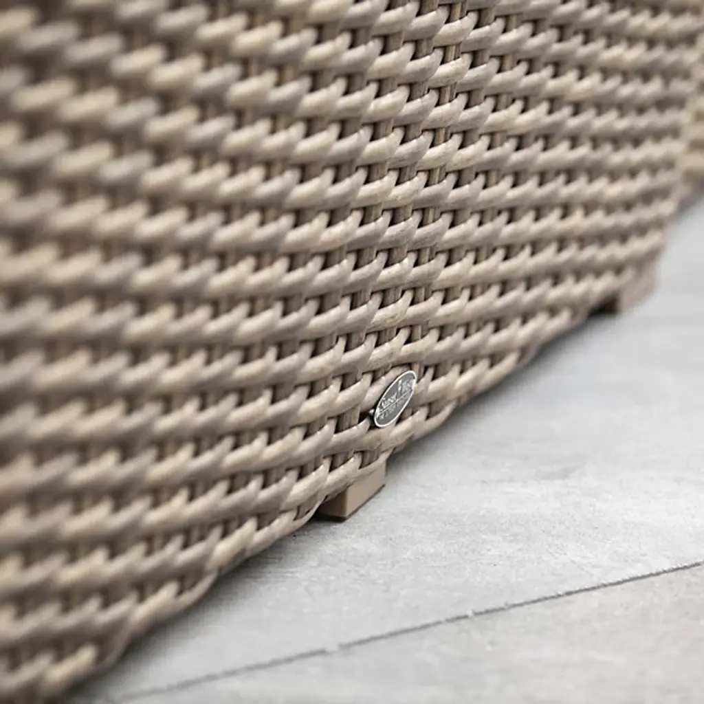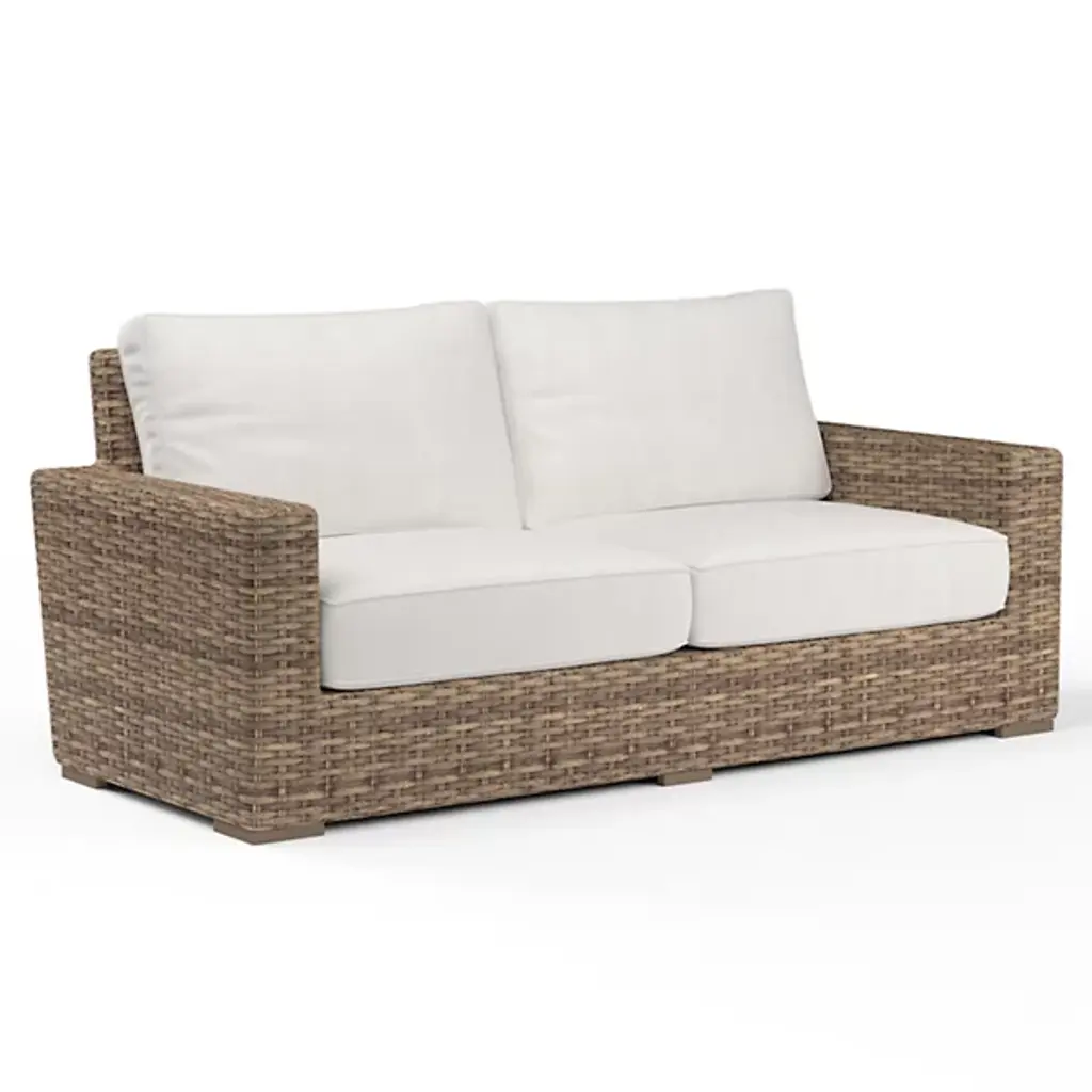 The Havana Outdoor Loveseat from Sunset West wraps two people in richly textured tobacco weaving that creates intimate seating experiences through carefully scaled geometry. The compact format suits smaller outdoor spaces without sacrificing the comfort and engineering that define larger seating pieces. Advanced springing technology delivers responsive support while weather-resistant construction ensures reliable durability across seasons. Plush cushioning nestles within the woven framework of this outdoor loveseat to create cozy conversation nooks.