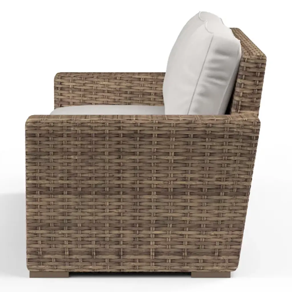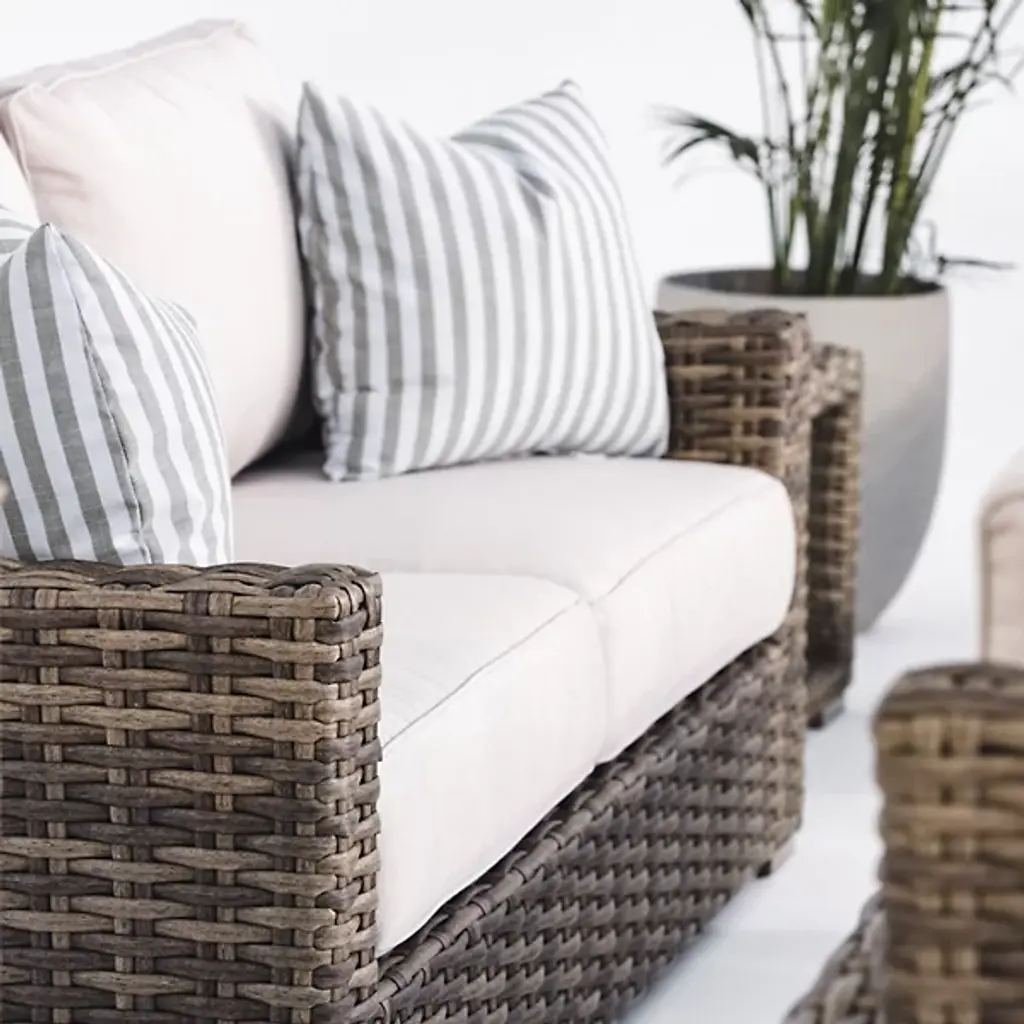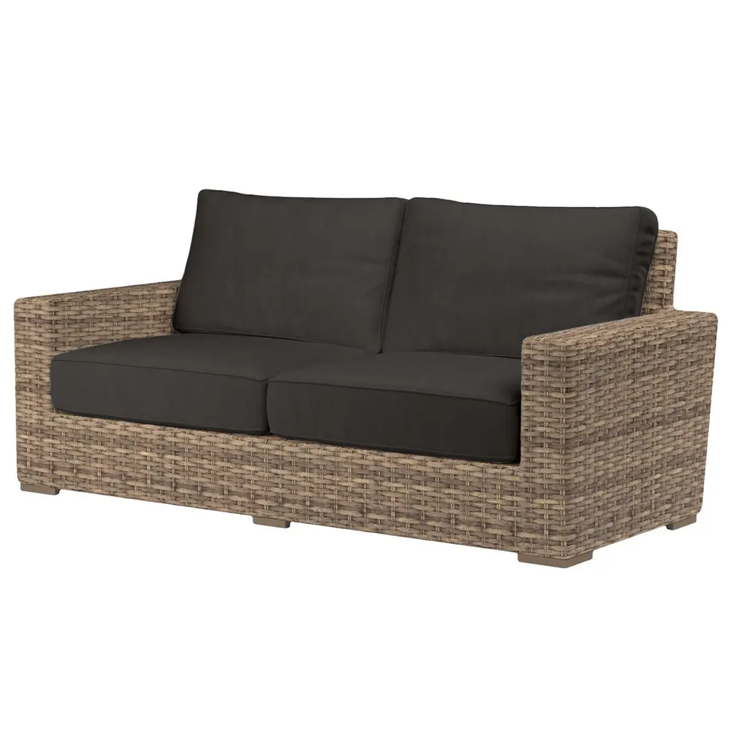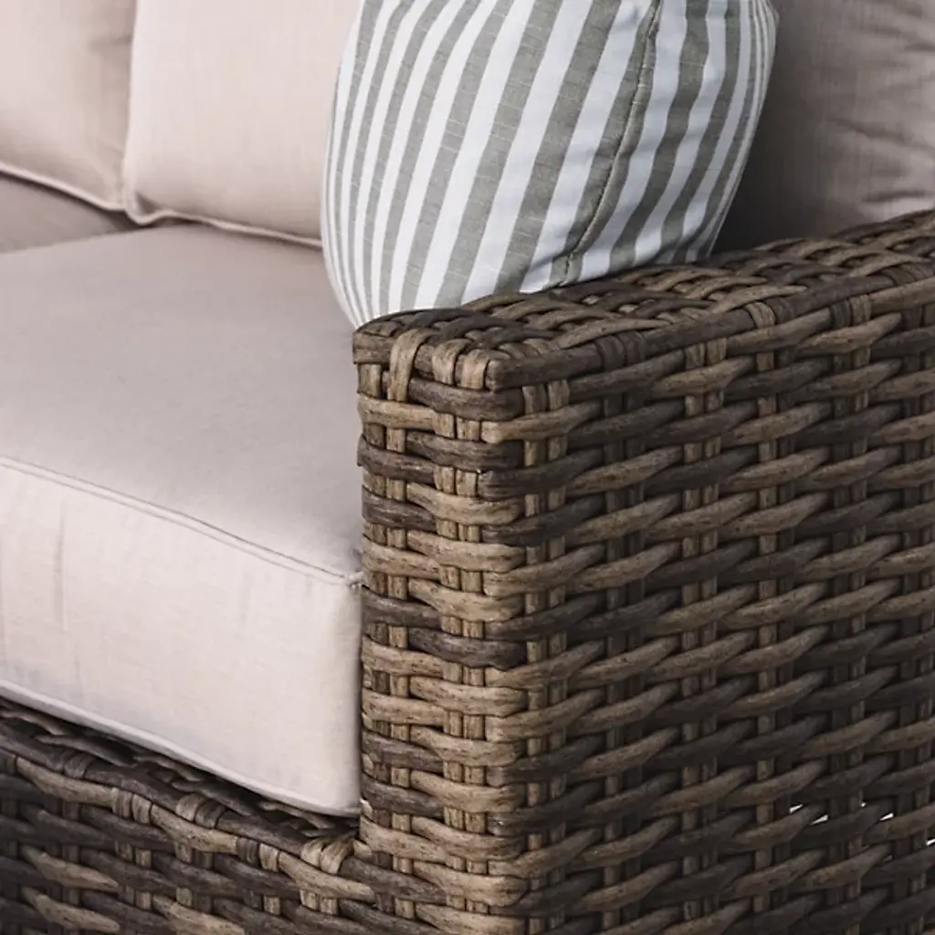 The Havana Outdoor Loveseat from Sunset West wraps two people in richly textured tobacco weaving that creates intimate seating experiences through carefully scaled geometry. The compact format suits smaller outdoor spaces without sacrificing the comfort and engineering that define larger seating pieces. Advanced springing technology delivers responsive support while weather-resistant construction ensures reliable durability across seasons. Plush cushioning nestles within the woven framework of this outdoor loveseat to create cozy conversation nooks.