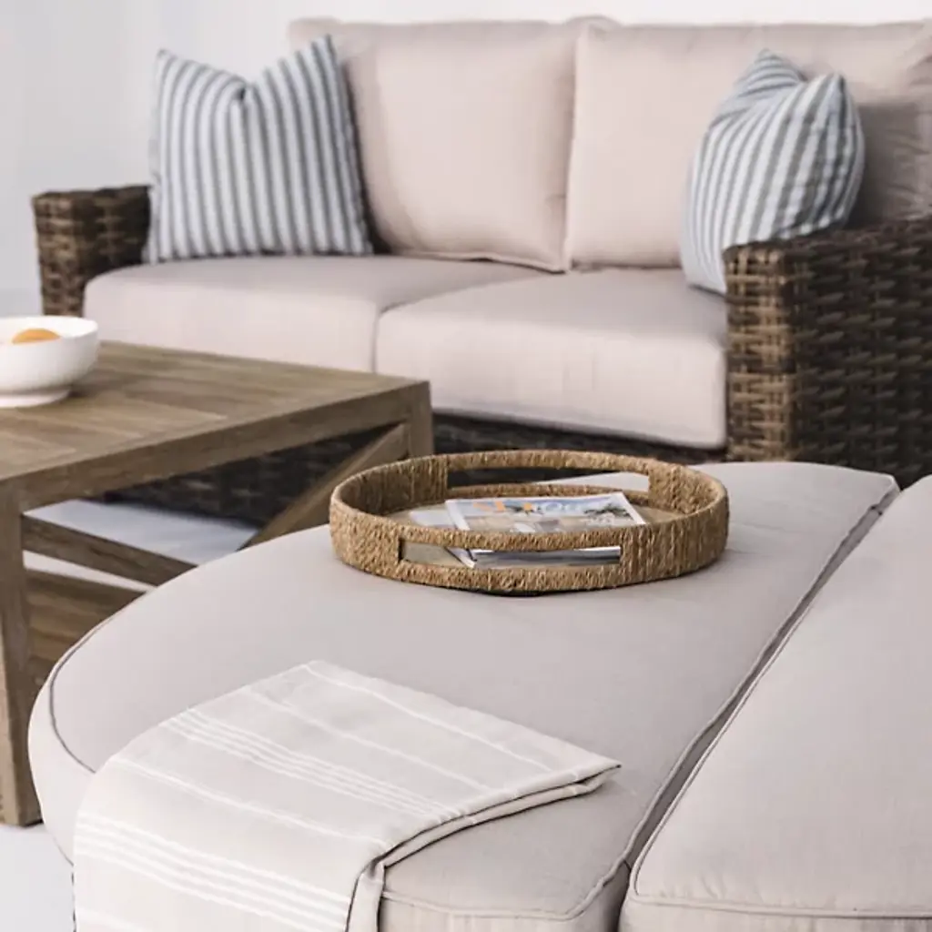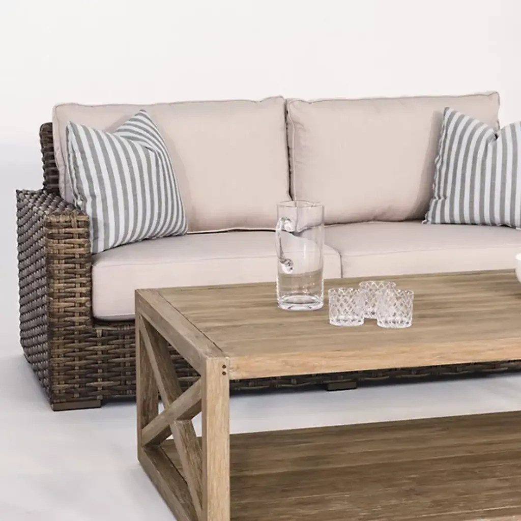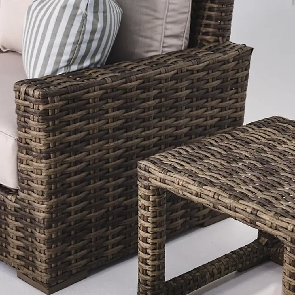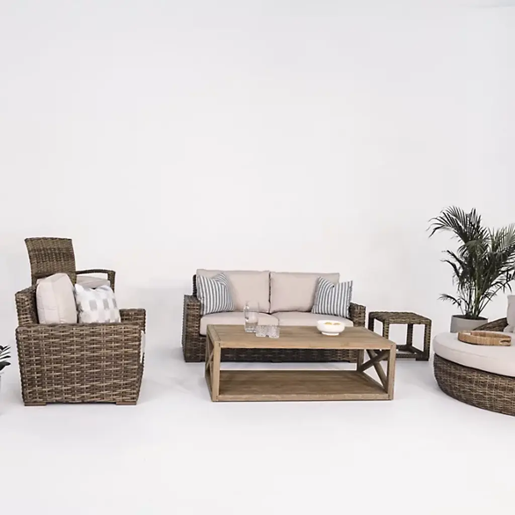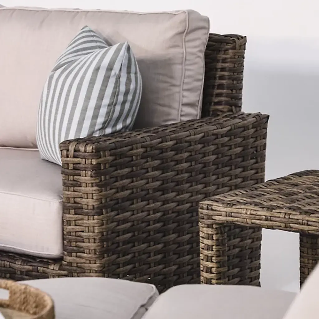The Havana Outdoor Loveseat from Sunset West wraps two people in richly textured tobacco weaving that creates intimate seating experiences through carefully scaled geometry. The compact format suits smaller outdoor spaces without sacrificing the comfort and engineering that define larger seating pieces. Advanced springing technology delivers responsive support while weather-resistant construction ensures reliable durability across seasons. Plush cushioning nestles within the woven framework of this outdoor loveseat to create cozy conversation nooks.