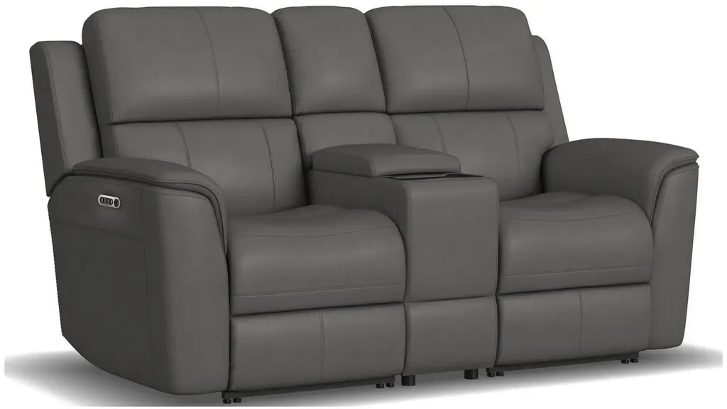 Experience the perfect blend of luxury, comfort, and advanced technology with the Henrick triple power leather console loveseat. In beautiful hues of premium leather, the Henrick's smooth finish and well-defined stitching bring sophistication to any living room. This triple power loveseat features zero gravity reclining with plump seat cushions that cradle you in softness while providing the support you need for long-lasting relaxation. Plus, you'll appreciate the convenience of a center console with hidden storage, cupholders, USB ports, and a wireless charging pad.
