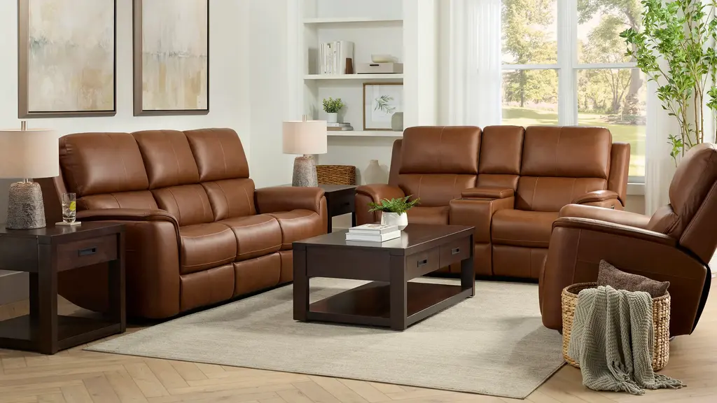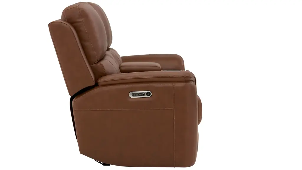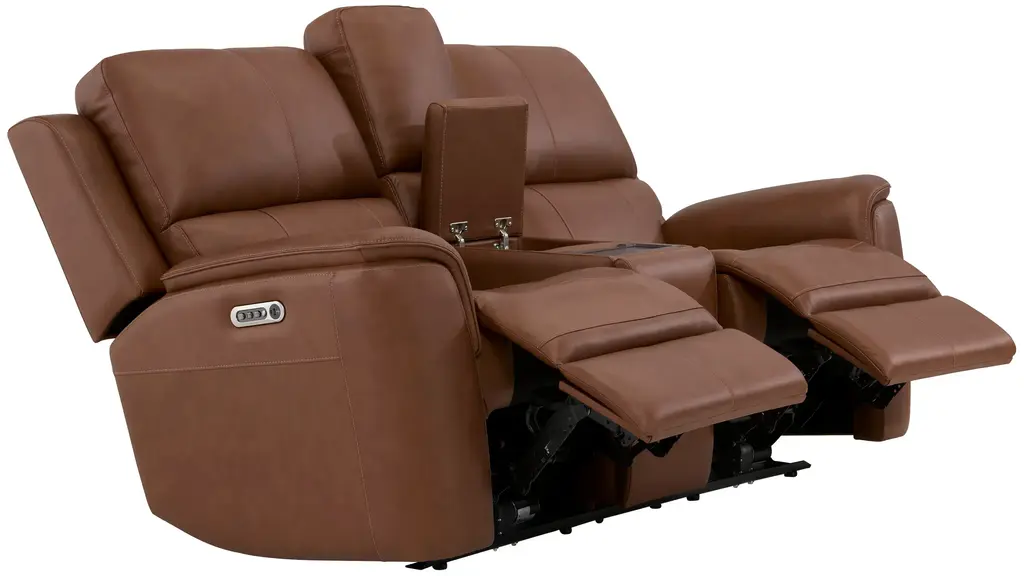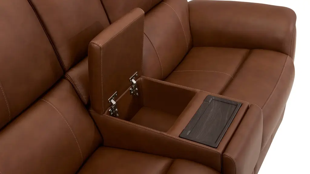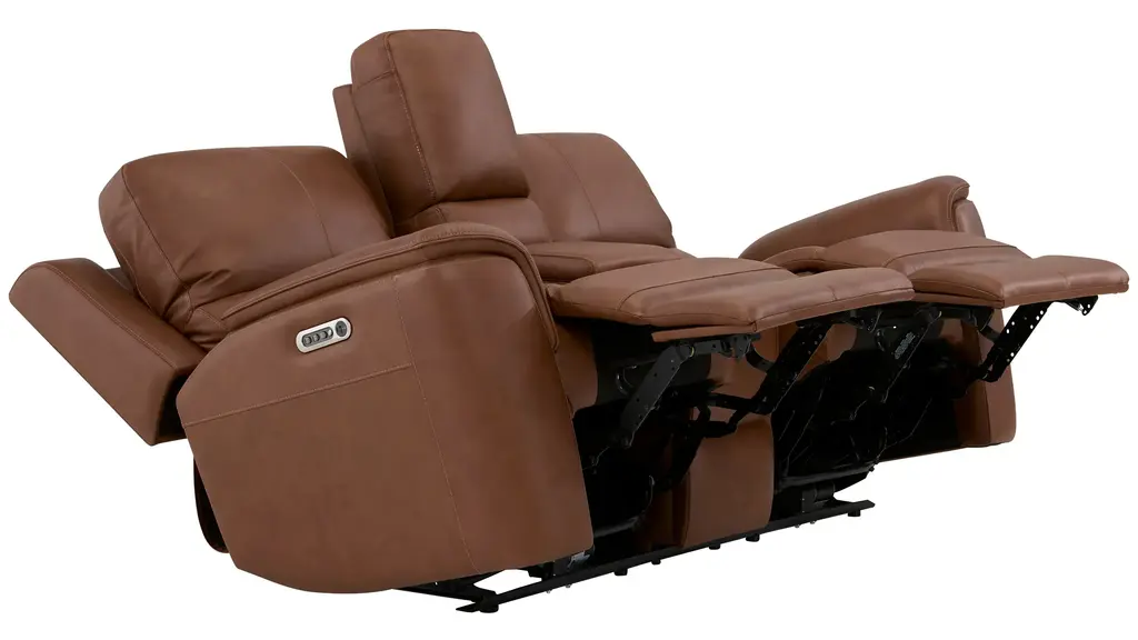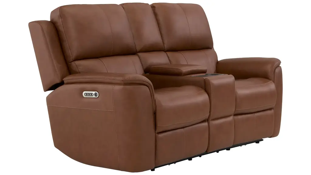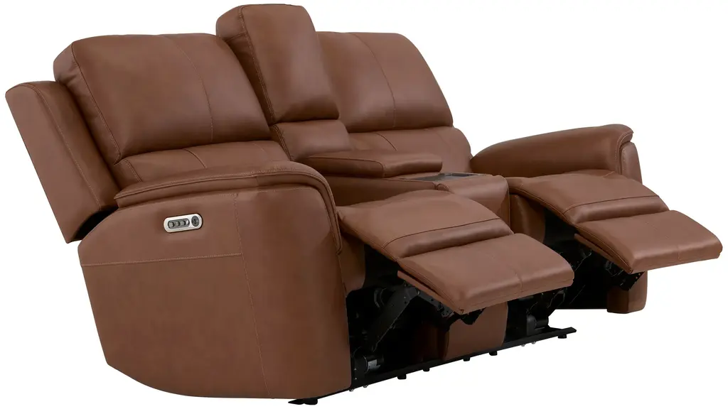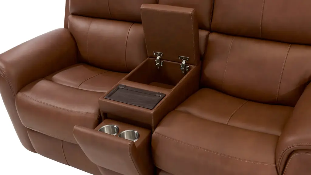 Experience the perfect blend of luxury, comfort, and advanced technology with the Henrick triple power leather console loveseat. In beautiful hues of premium leather, the Henrick's smooth finish and well-defined stitching bring sophistication to any living room. This triple power loveseat features zero gravity reclining with plump seat cushions that cradle you in softness while providing the support you need for long-lasting relaxation. Plus, you'll appreciate the convenience of a center console with hidden storage, cupholders, USB ports, and a wireless charging pad.