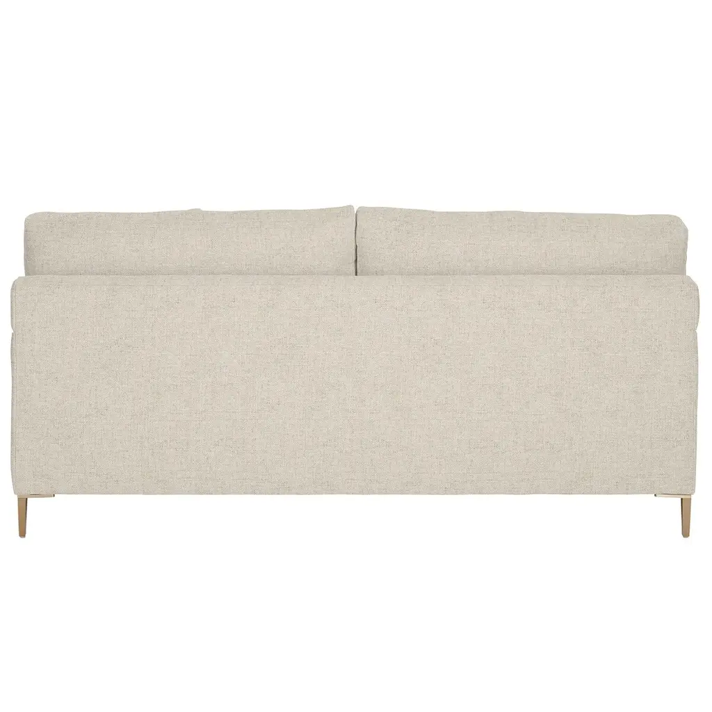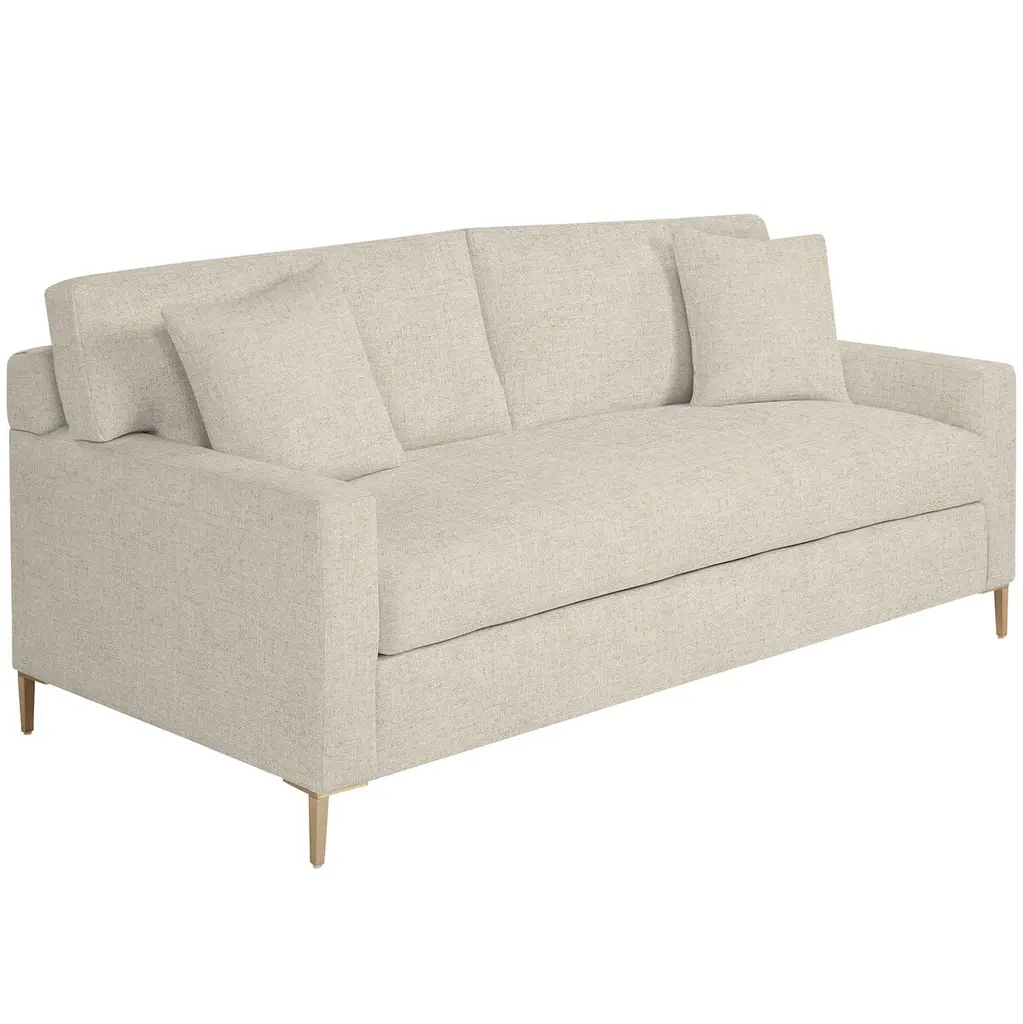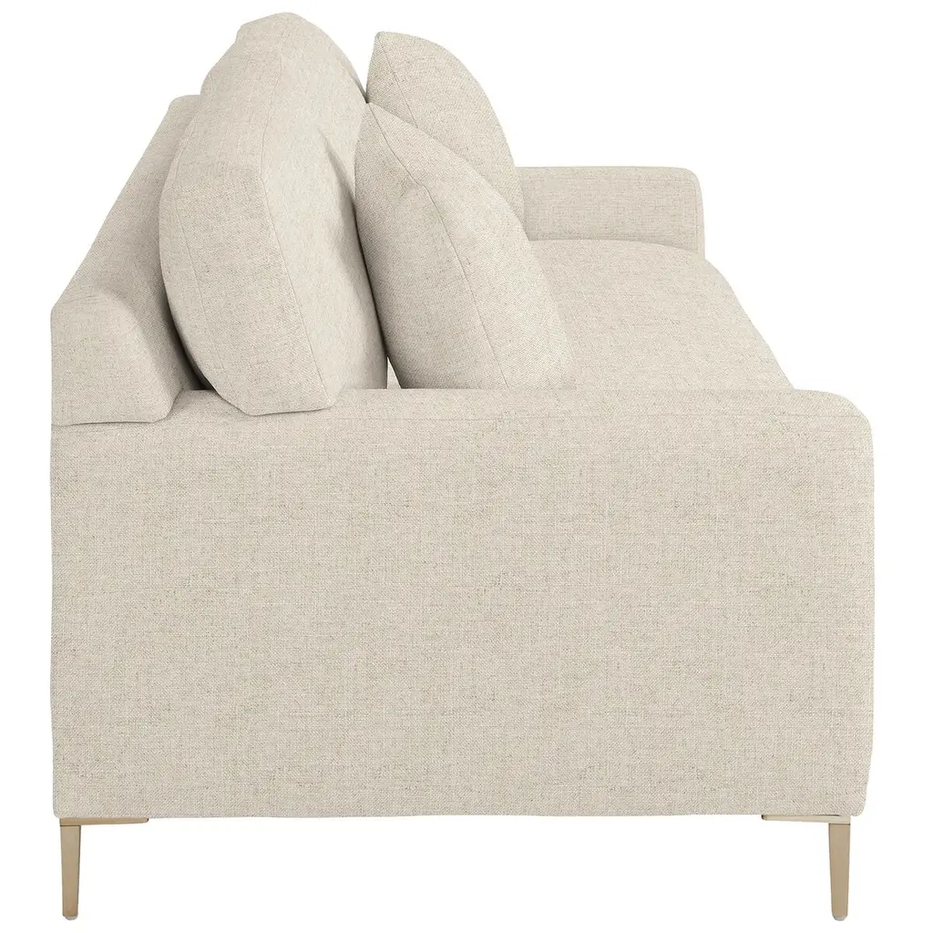 Exclusive to One Kings Lane: Defined by its crisp lines and brass leg design, this stylish loveseat embodies a sleek, Scandinavian-inspired look. It is upholstered in Crypton--an eco-friendly high-performance fabric--which repels stains, spills, bacteria, and mold. Constructed of an engineered hardwood-laminate frame, eight-way hand-tied suspension system, and a spring foam cushion with down-proof ticking ensure long-lasting comfort and support. Each piece is handcrafted by skilled artisans in High Point, NC and offers a lifetime warranty on the frame and suspension system and a limited lifetime warranty on the seat cushion.